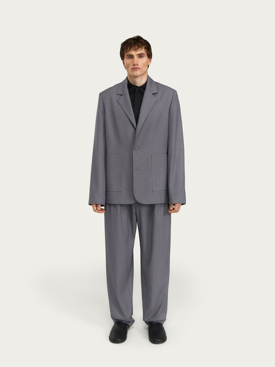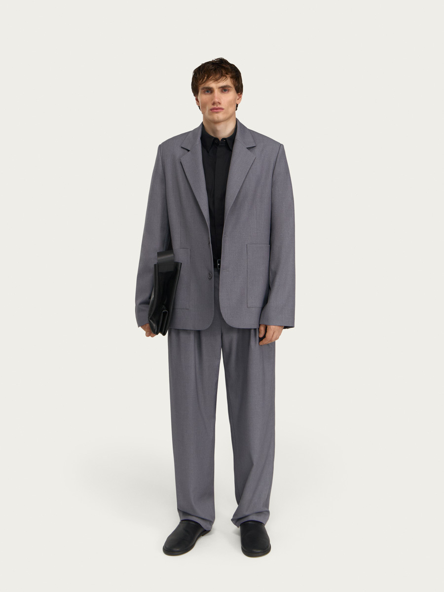 Брюки Алекс могут быть дополнены пиджаком Бостон с накладными карманами.