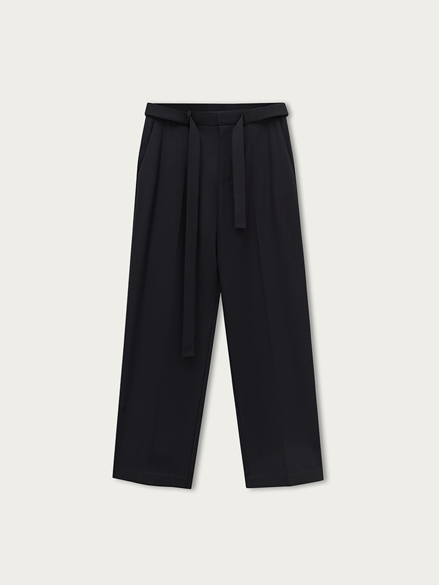 Брюки прямого силуэта с заутюженными стрелками, на притачном поясе с застежкой на брючный крючок и внутреннюю пуговицу, а также гульфик на молнии. На передних половинках обработаны карманы с бочком, на задних половинках - вытачки. На правой задней половинке обработан карман с листочкой, который застегивается на внутреннюю пуговицу. В комплекте с брюками идет съемный пояс, который продевается в шлевки.