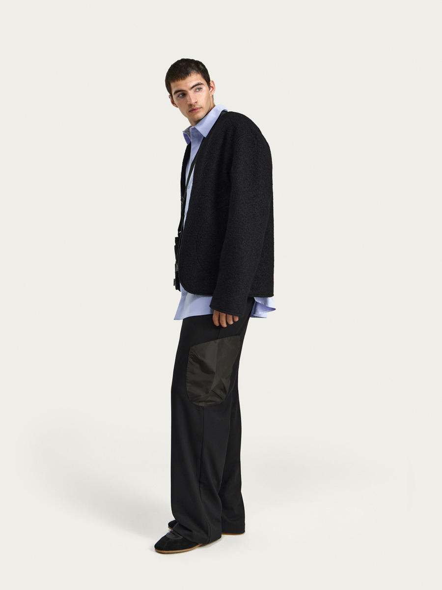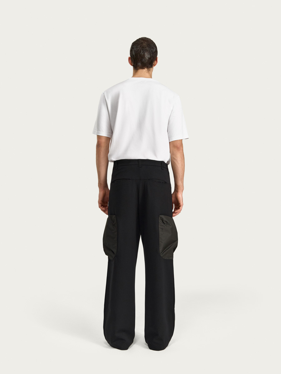 Мужские брюки Фил из костюмной ткани. Брюки имеют прямой силуэт, притачной пояс со шлёвками, застёжку на брючный крючок и молнию в гульфике, сзади отрезная кокетка и карманы в швах. Интересная деталь: по бокам расположены объёмные фигурные карманы из плащевой ткани. Брюки Фил с фигурными карманами дополнят Ваш гардероб.