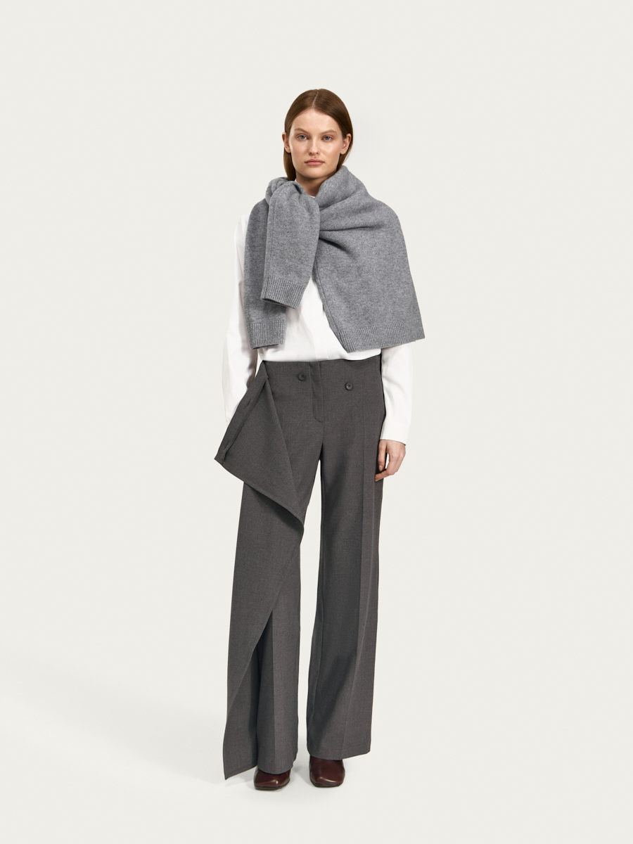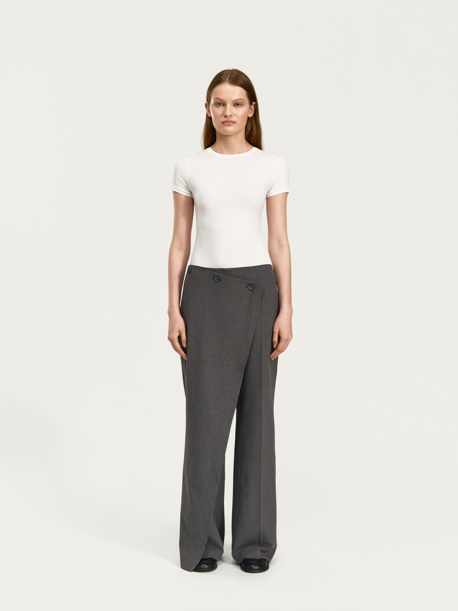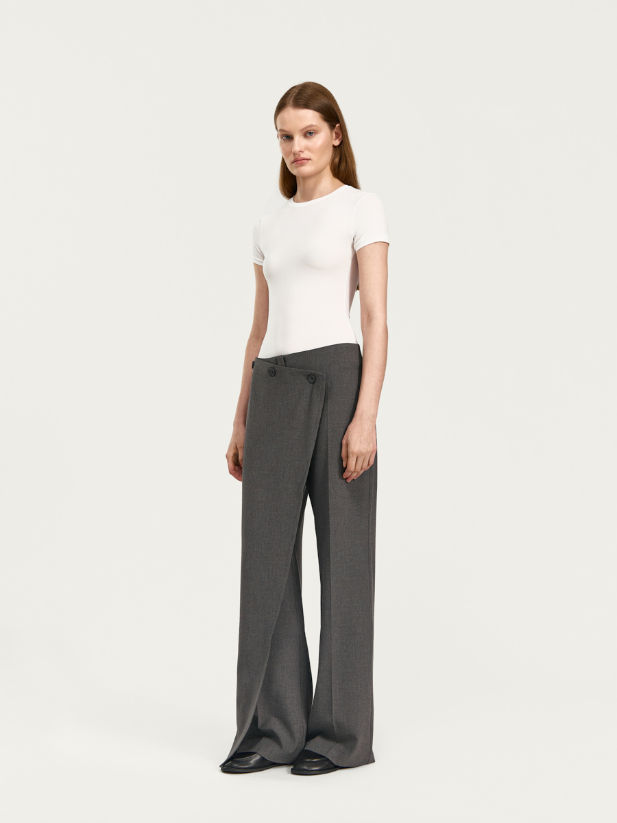 Брюки Гвен с отлетной деталью выполнены из костюмной ткани.