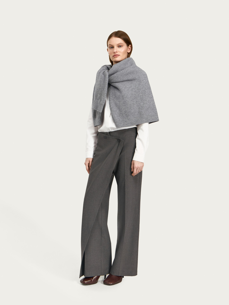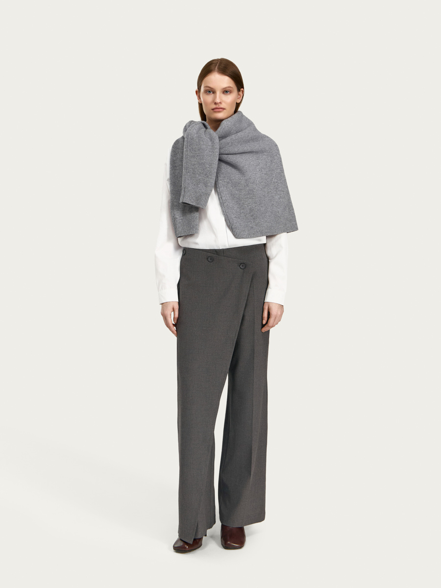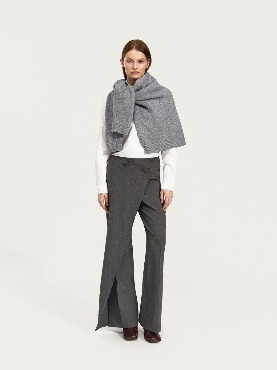Брюки Гвен с отлетной деталью выполнены из костюмной ткани.