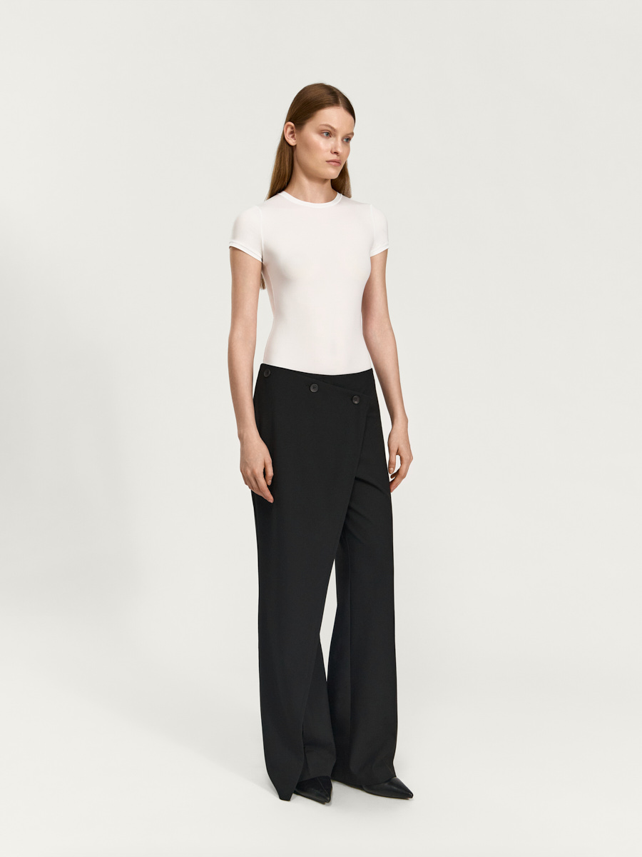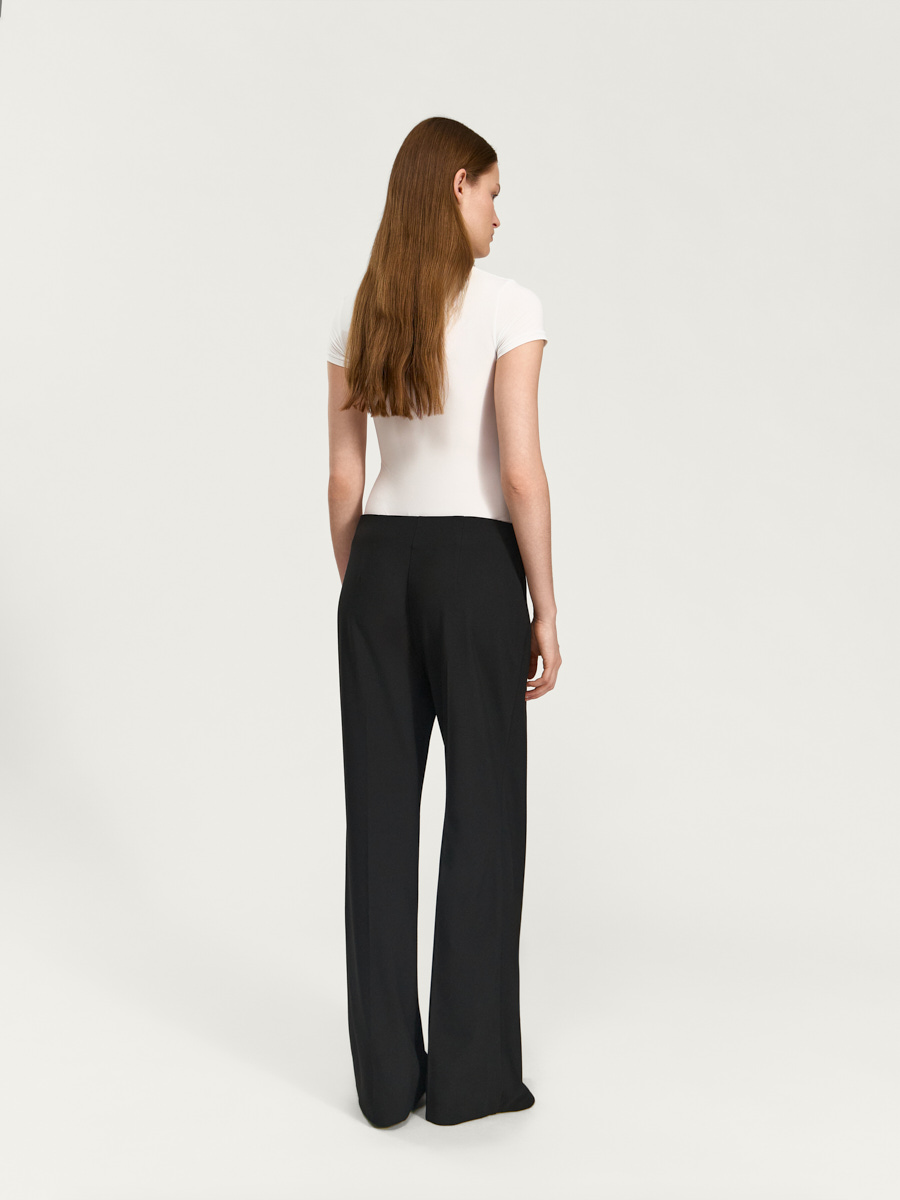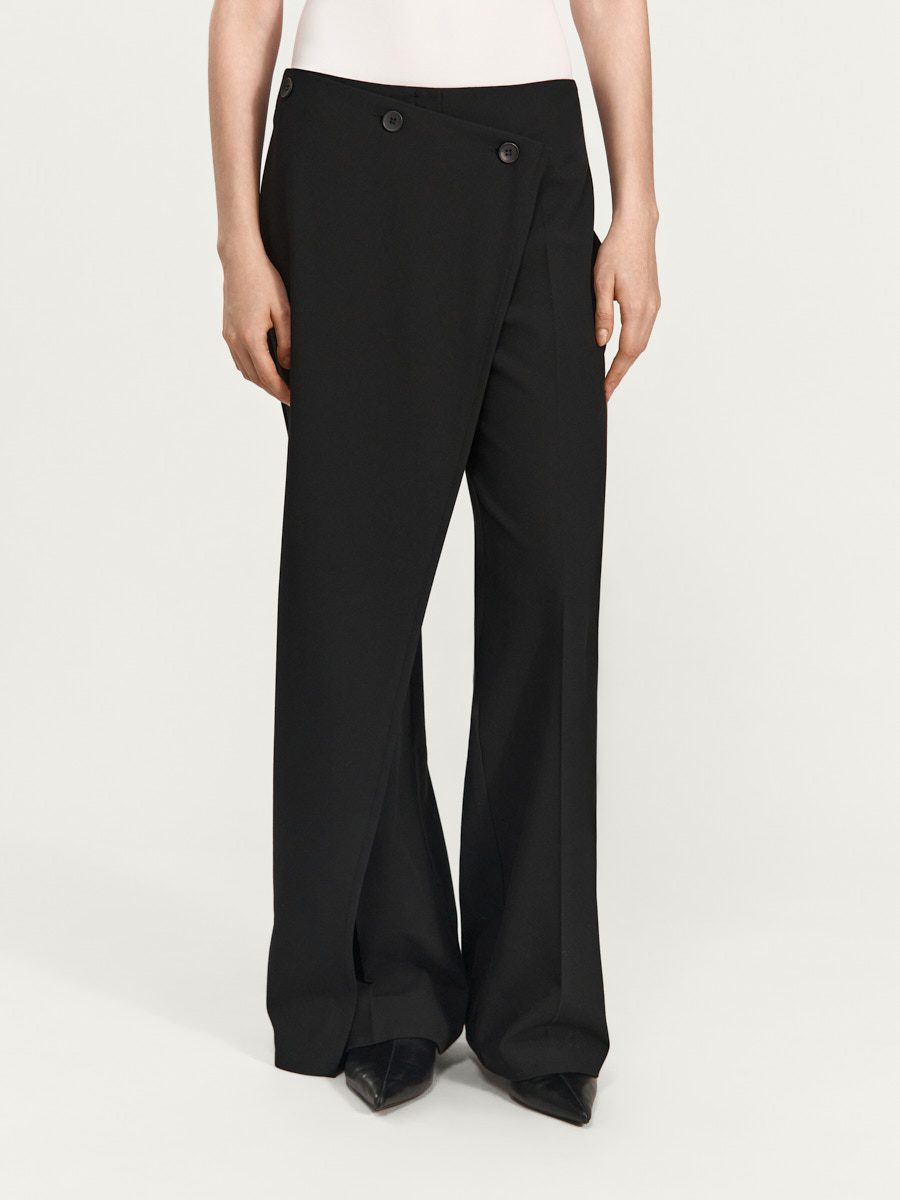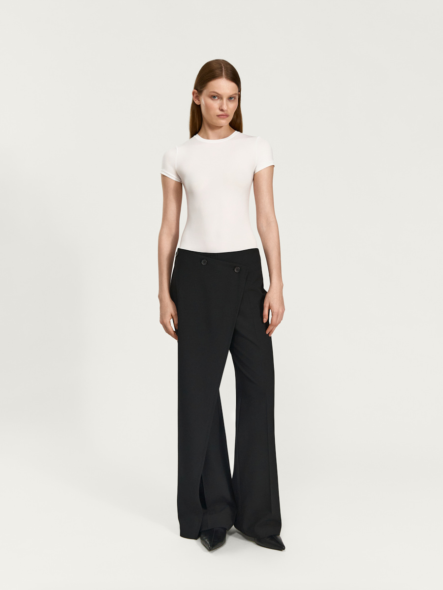 Брюки Гвен с отлетной деталью выполнены из костюмной ткани.