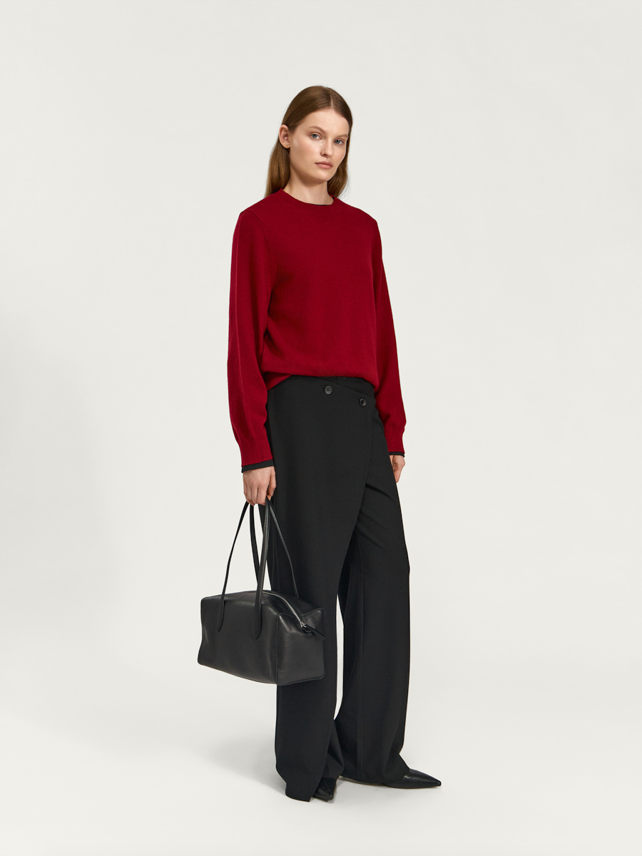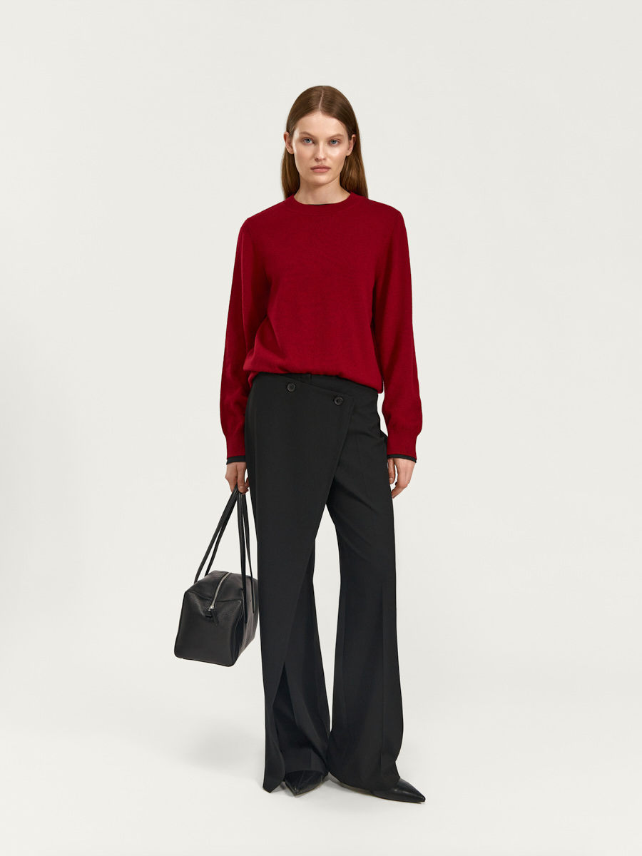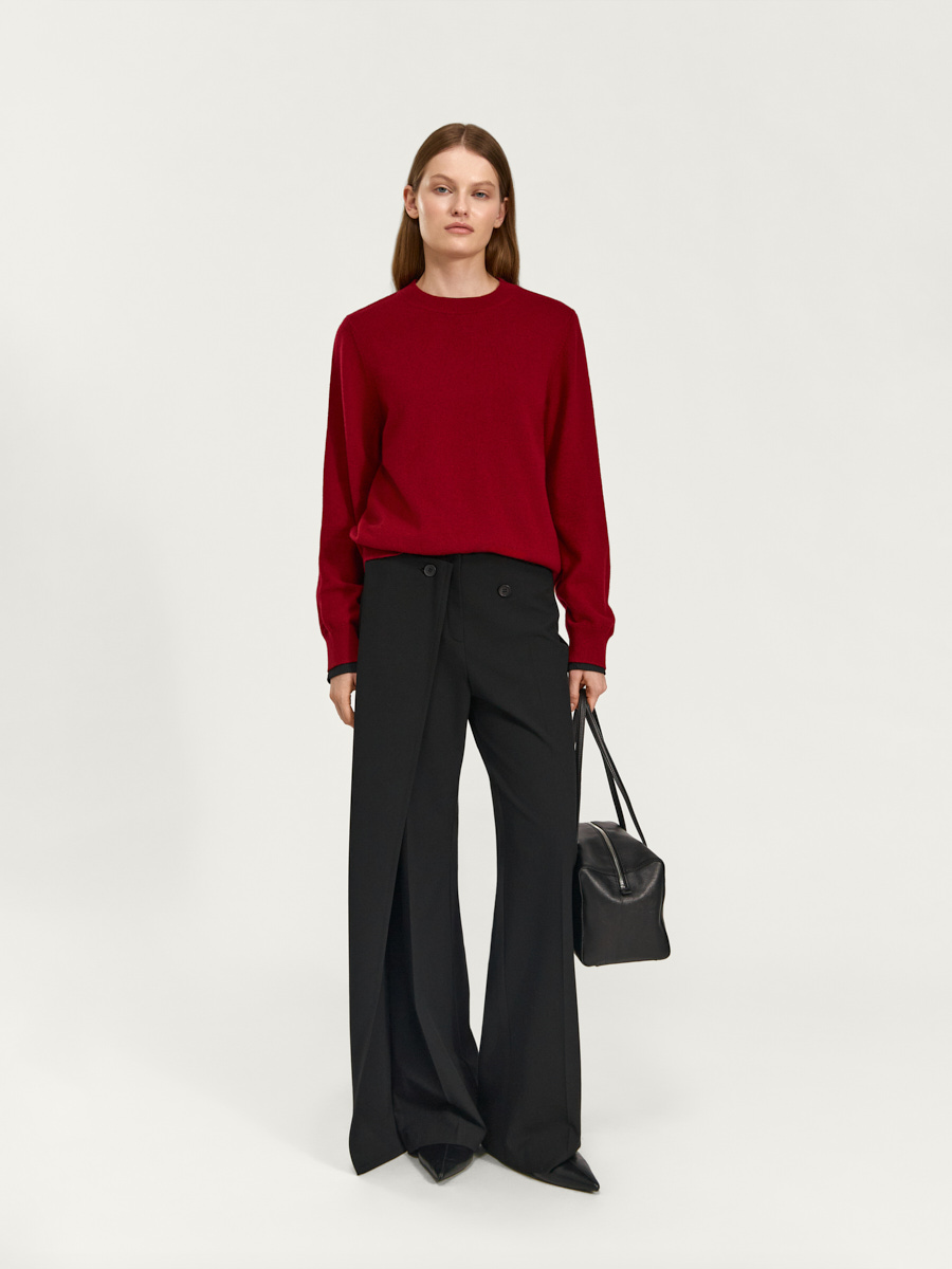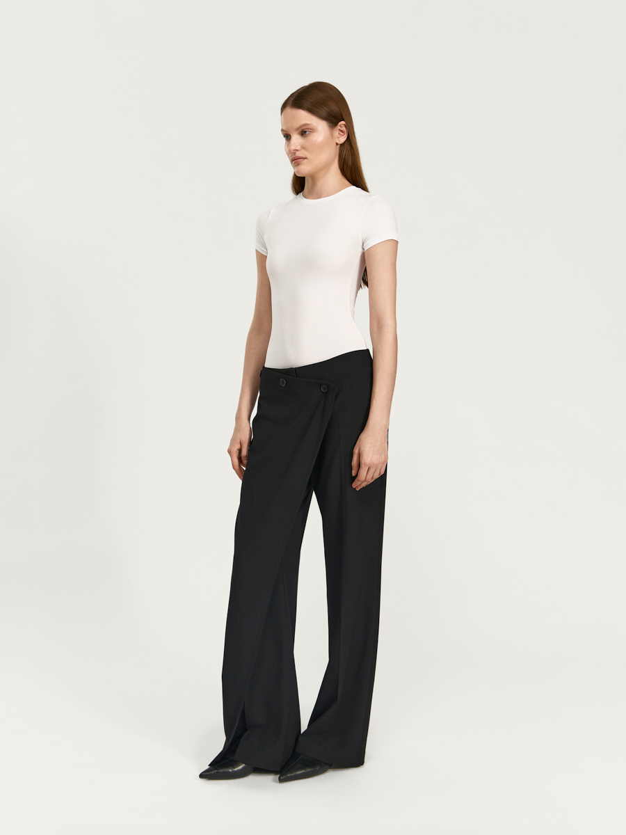 Брюки Гвен с отлетной деталью выполнены из костюмной ткани.