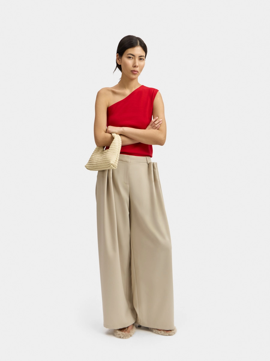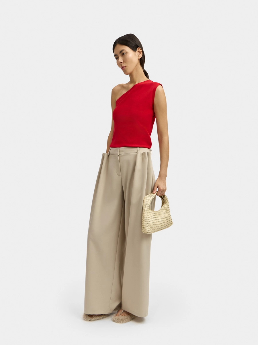 Pants with decorative pleats Caroline are made of fine suiting fabric.
