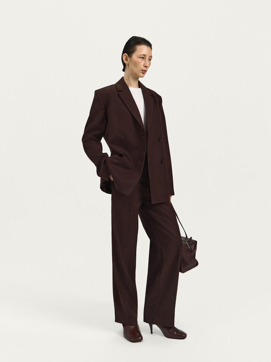 Оптимальная длина брюк позволяет легко сочетать их с рубашками, жакетами, свитерами и верхней одеждой.