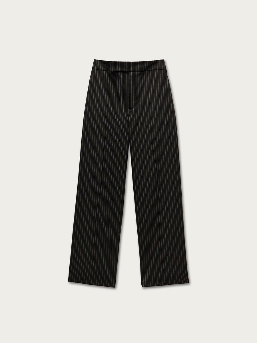 Брюки на средней посадке с застежкой на металлическую молнию в гульфике и джинсовую кнопку на притачном поясе с шестью шлевками.