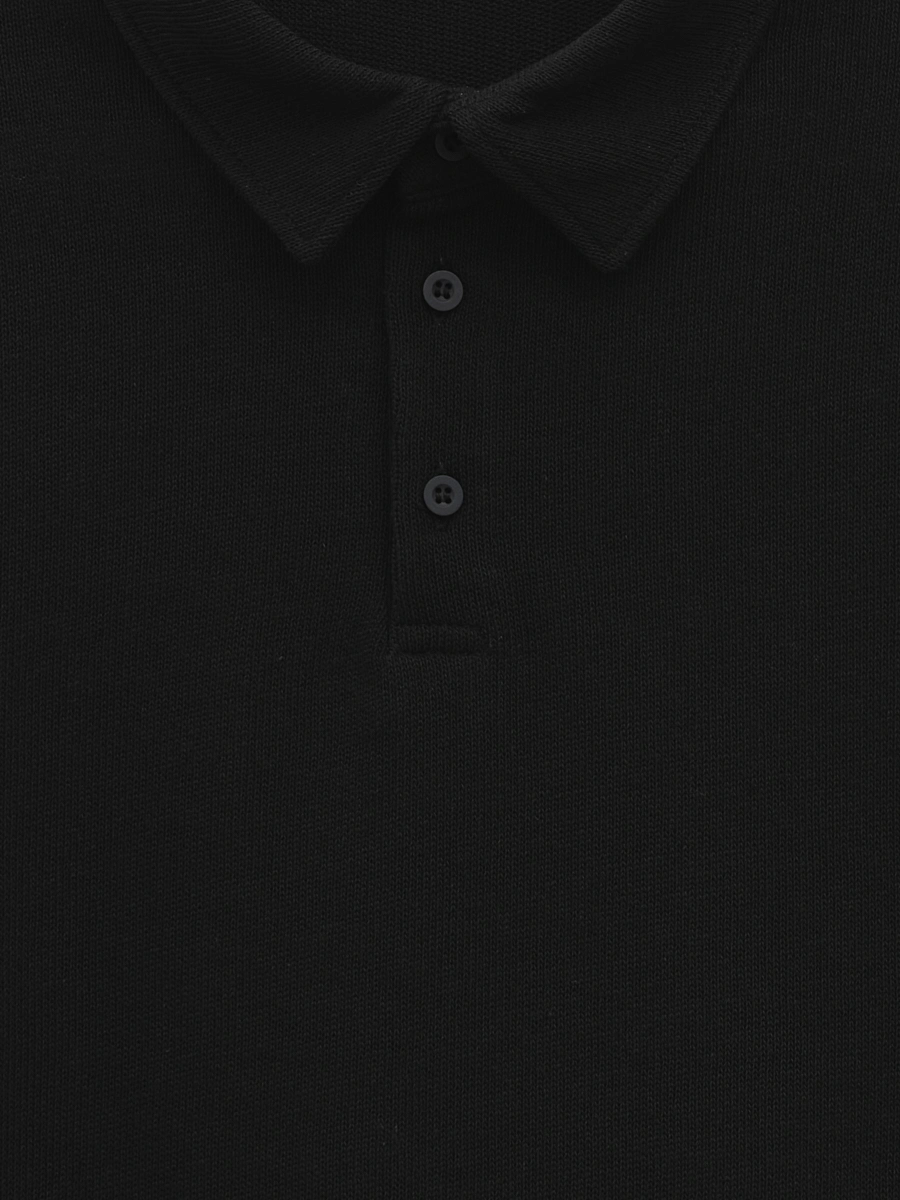 Футболка прямого кроя с воротником и застёжкой поло на три пуговицы.