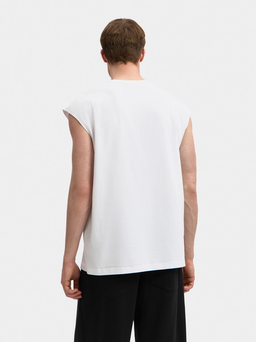 Мужская футболка Шон без рукавов выполнена из хлопкового трикотажа.