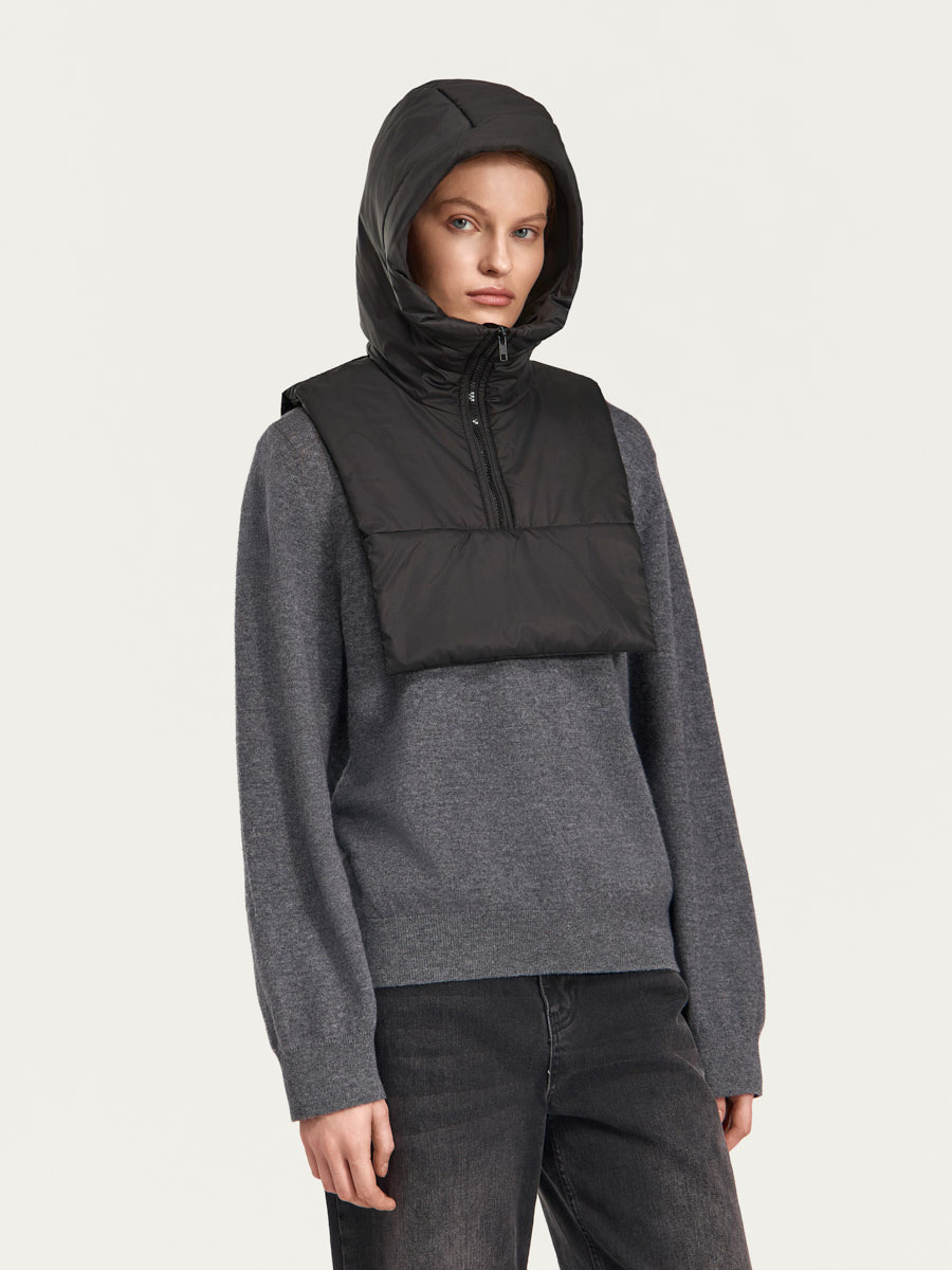 Вязаный капор-чепец с резинкой по периметру и перемычкой на подбородке. Капор станет достойной заменой привычной шапке. А мягкая пряжа с высоким содержанием шерсти мериноса согреет в холодное время года.