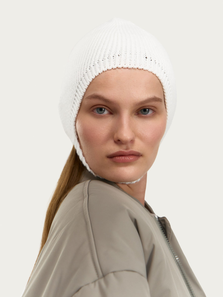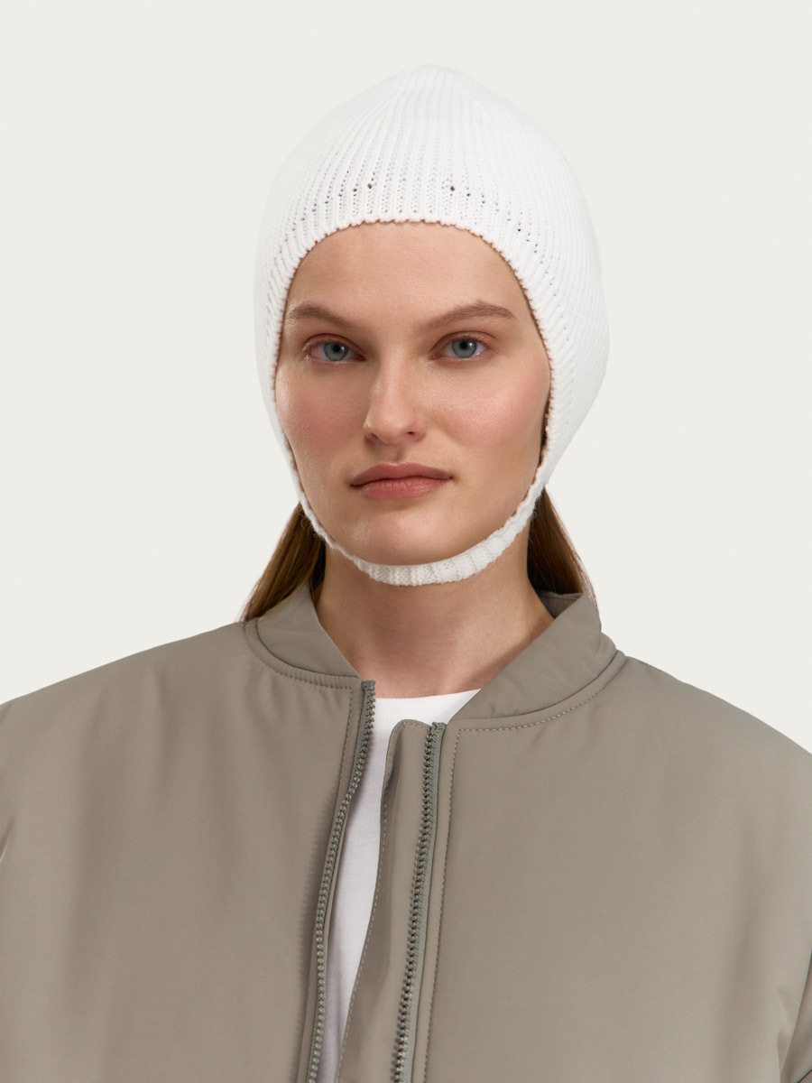 Вязаный капор-чепец с резинкой по периметру и перемычкой на подбородке. Капор станет достойной заменой привычной шапке. А мягкая пряжа с высоким содержанием шерсти мериноса согреет в холодное время года.