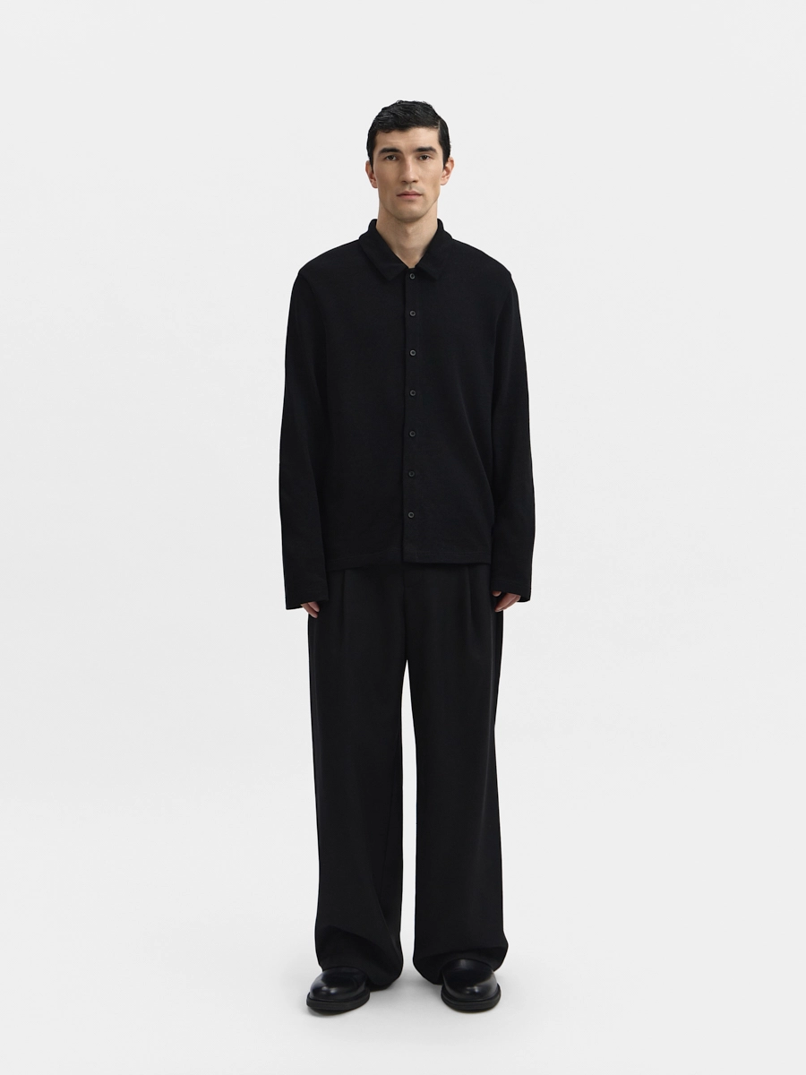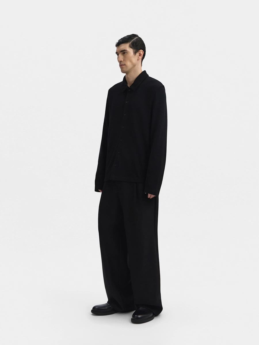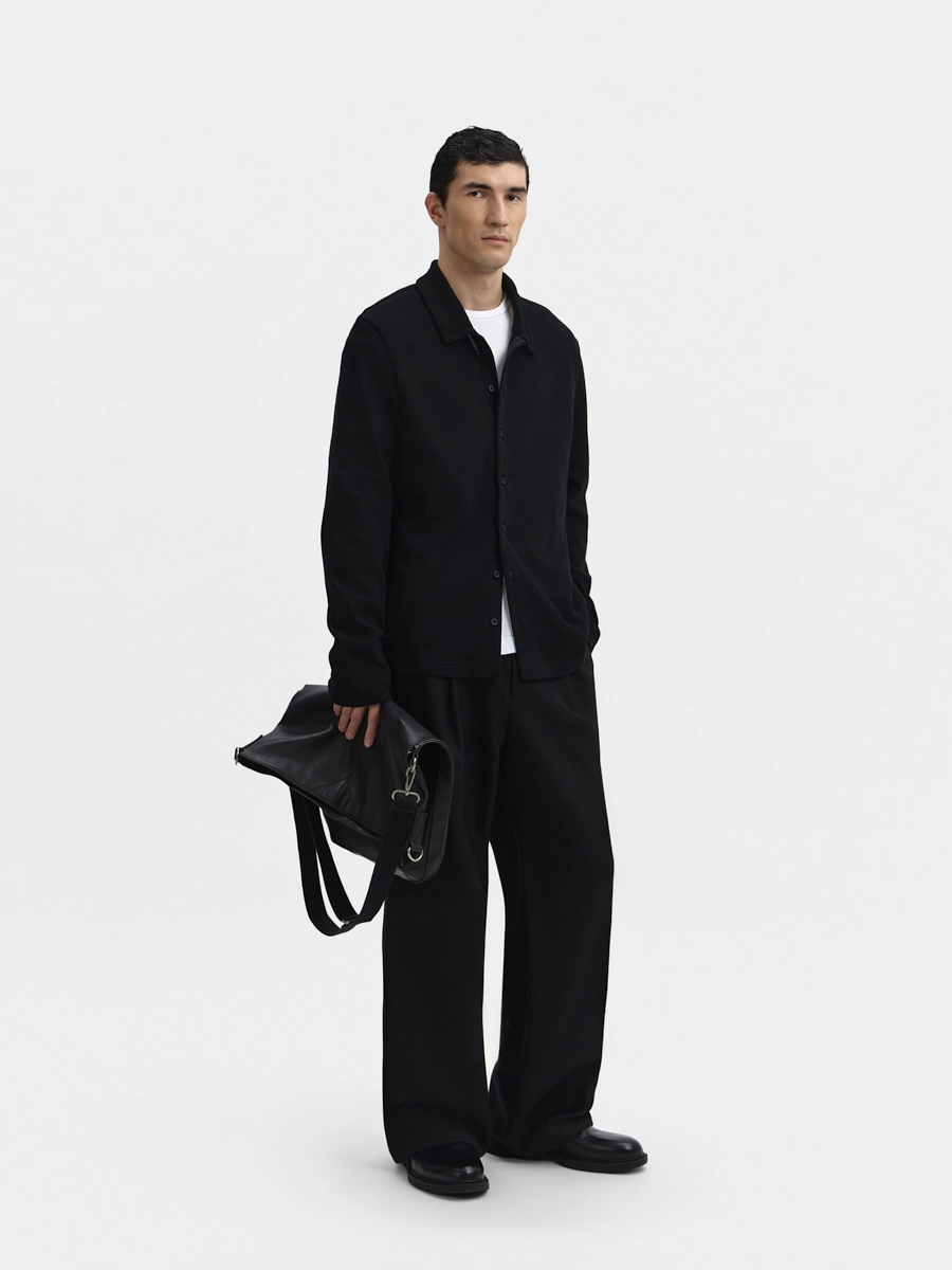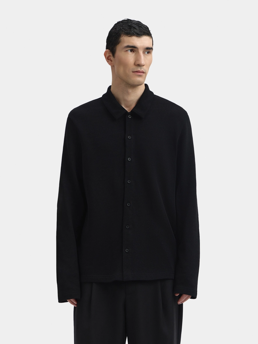 Кардиган Эдвард прямого силуэта с воротником, длинными рукавами и застёжкой на пуговицы.