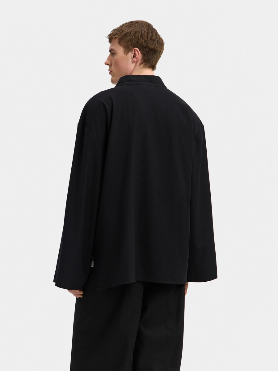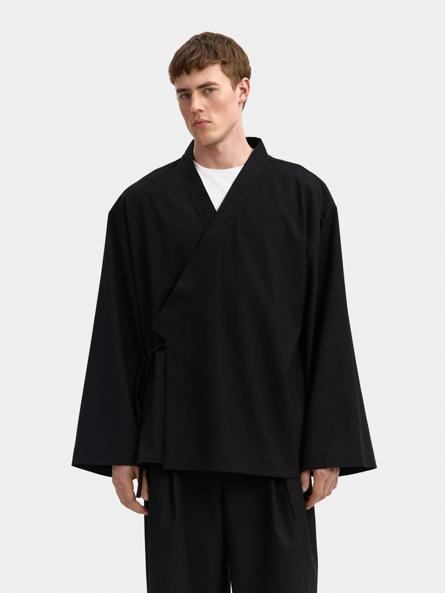 Мужское кимоно Райан прямого силуэта на запах выполнено из костюмной ткани. Кимоно станет прекрасной альтернативой классическому пиджаку. Модельной особенностью изделия является воротник, спущенная линия плеча и разрезы в боковых швах. Завязки, выходящие из края борта и бокового шва, позволяют регулировать прилегание изделия по талии. Кимоно Райан станет прекрасным дополнением вашего базового гардероба.