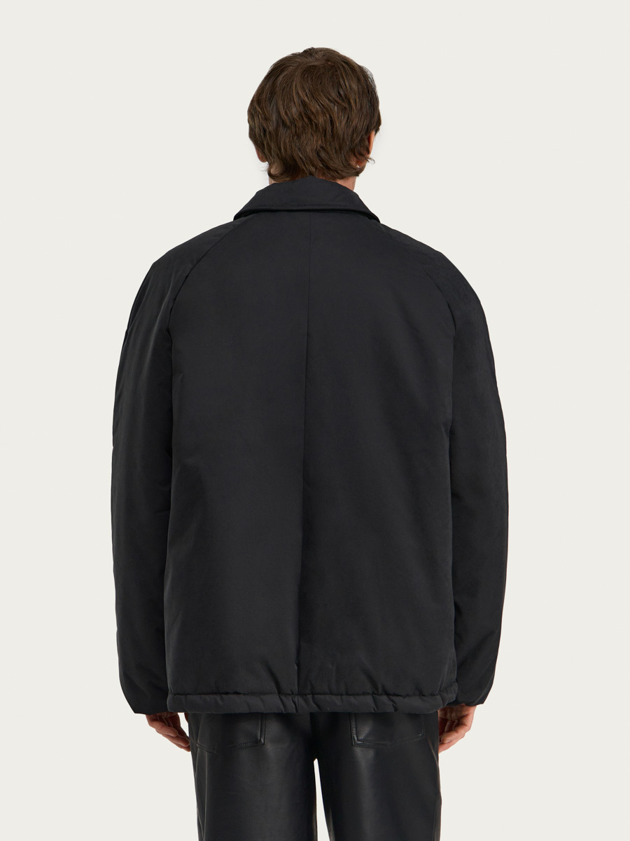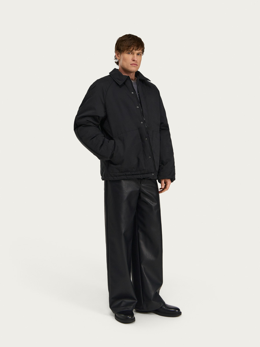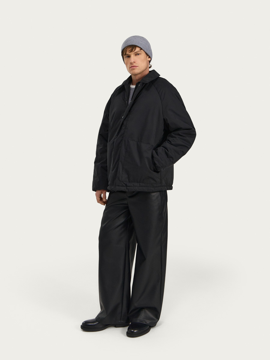 Куртка имеет застежку на молнию и потайные кнопки вдоль планки, накладные карманы с подкладкой из теплого флиса и воротник со стойкой.