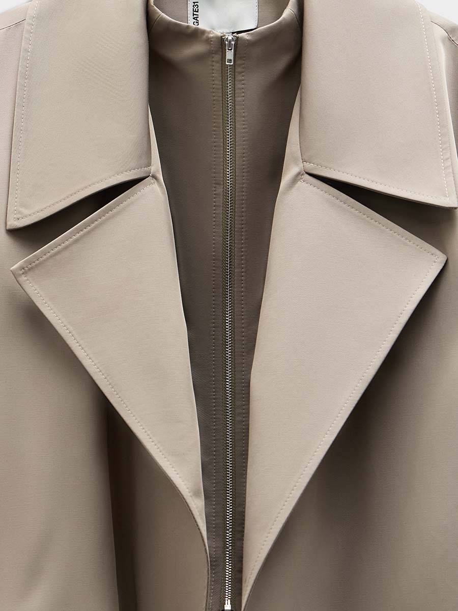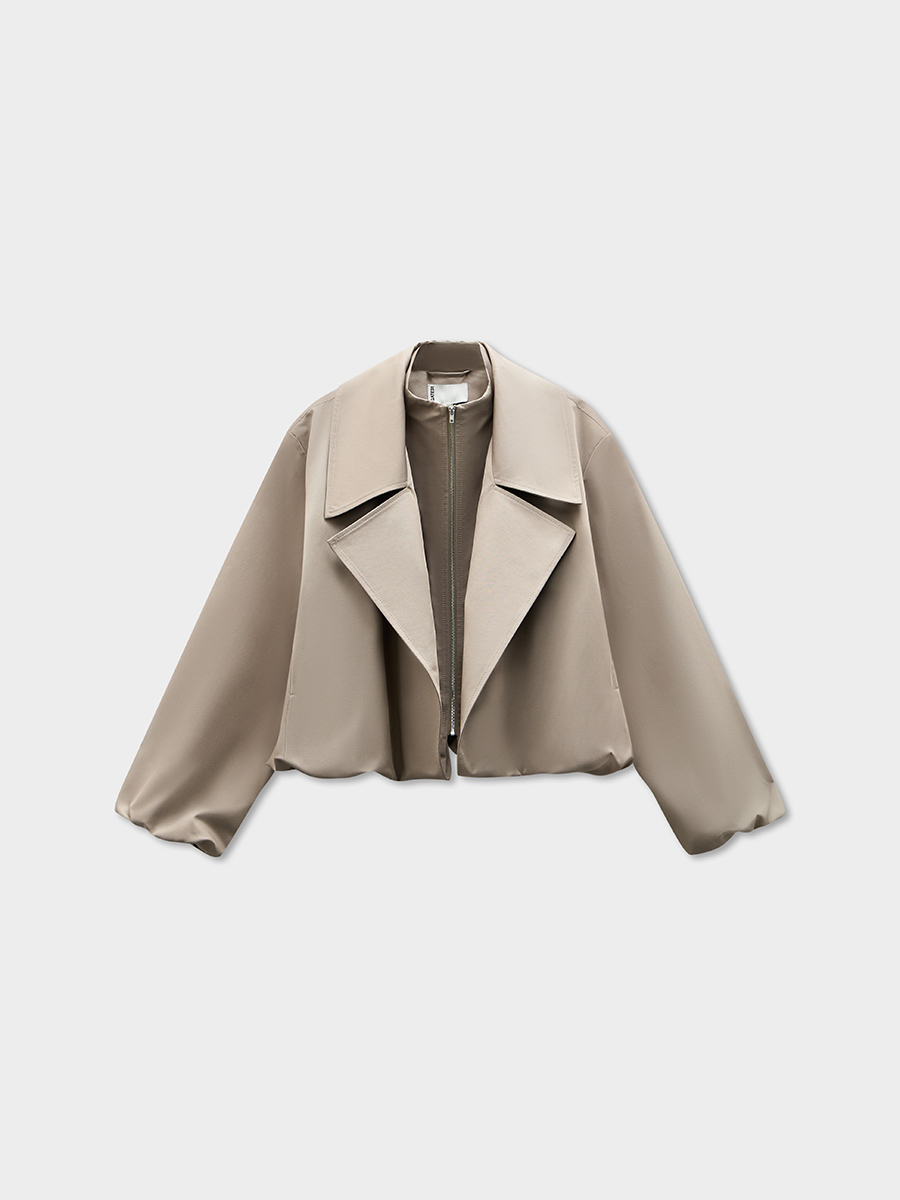 Куртка с объёмными рукавами и низом изделия за счет сборки на внутреннюю обтачку. Модель с небольшой стойкой и широким воротником с лацканами, застёжкой по центру на металлическую молнию, карманами в боковых швах. Изделие на подкладке.