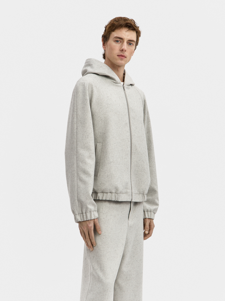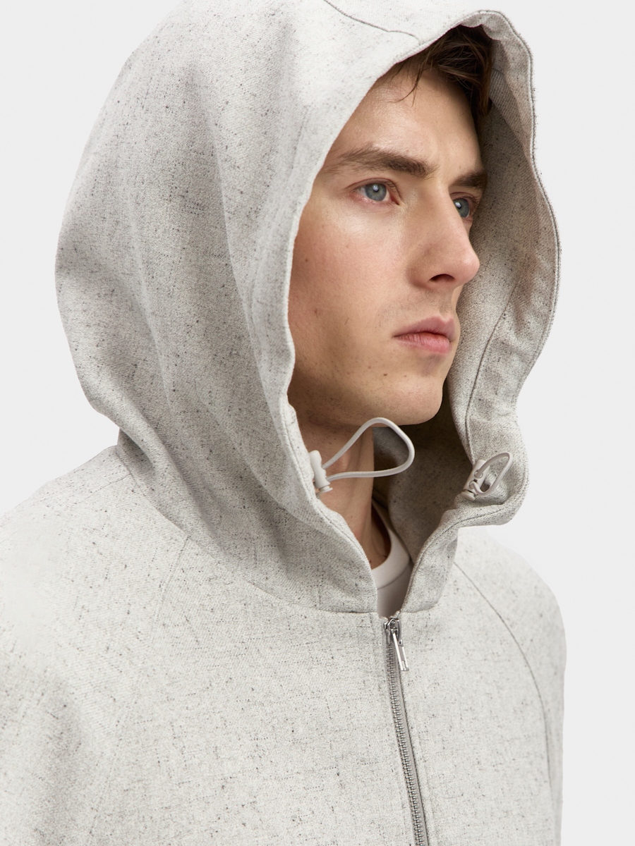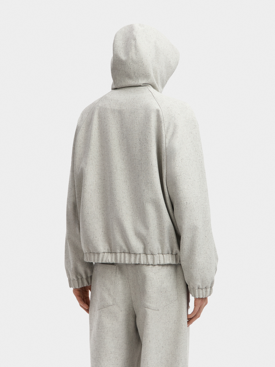 Hooded jacket Rouen is made of textured wool-blend suiting fabric.