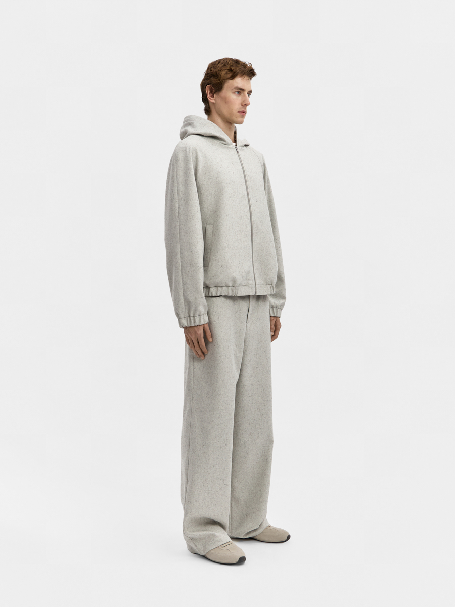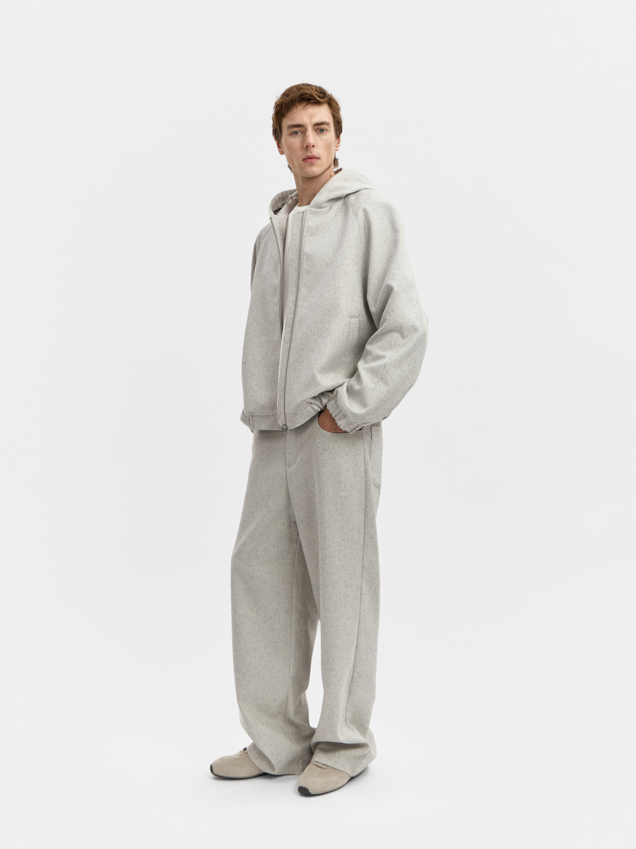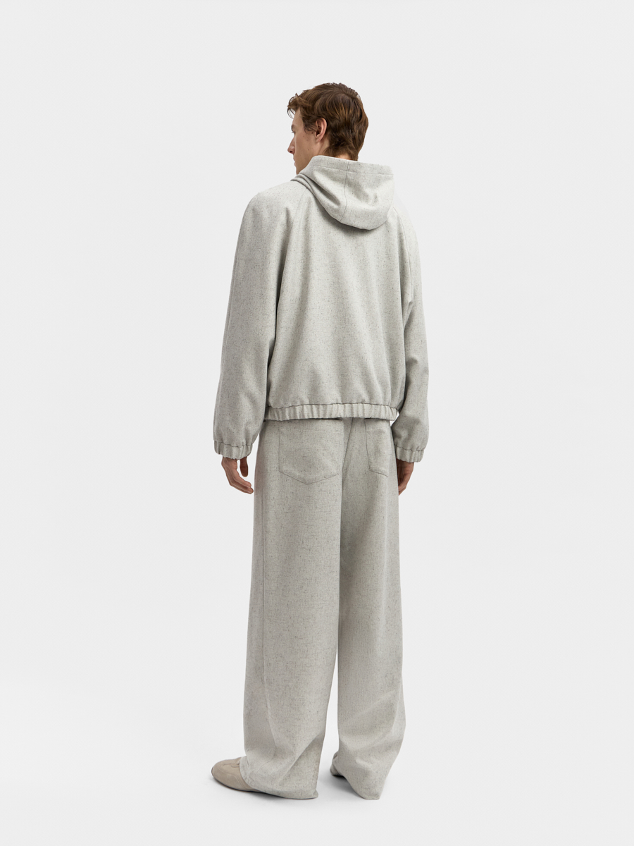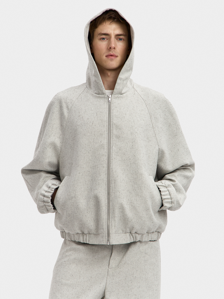 Hooded jacket Rouen is made of textured wool-blend suiting fabric.
