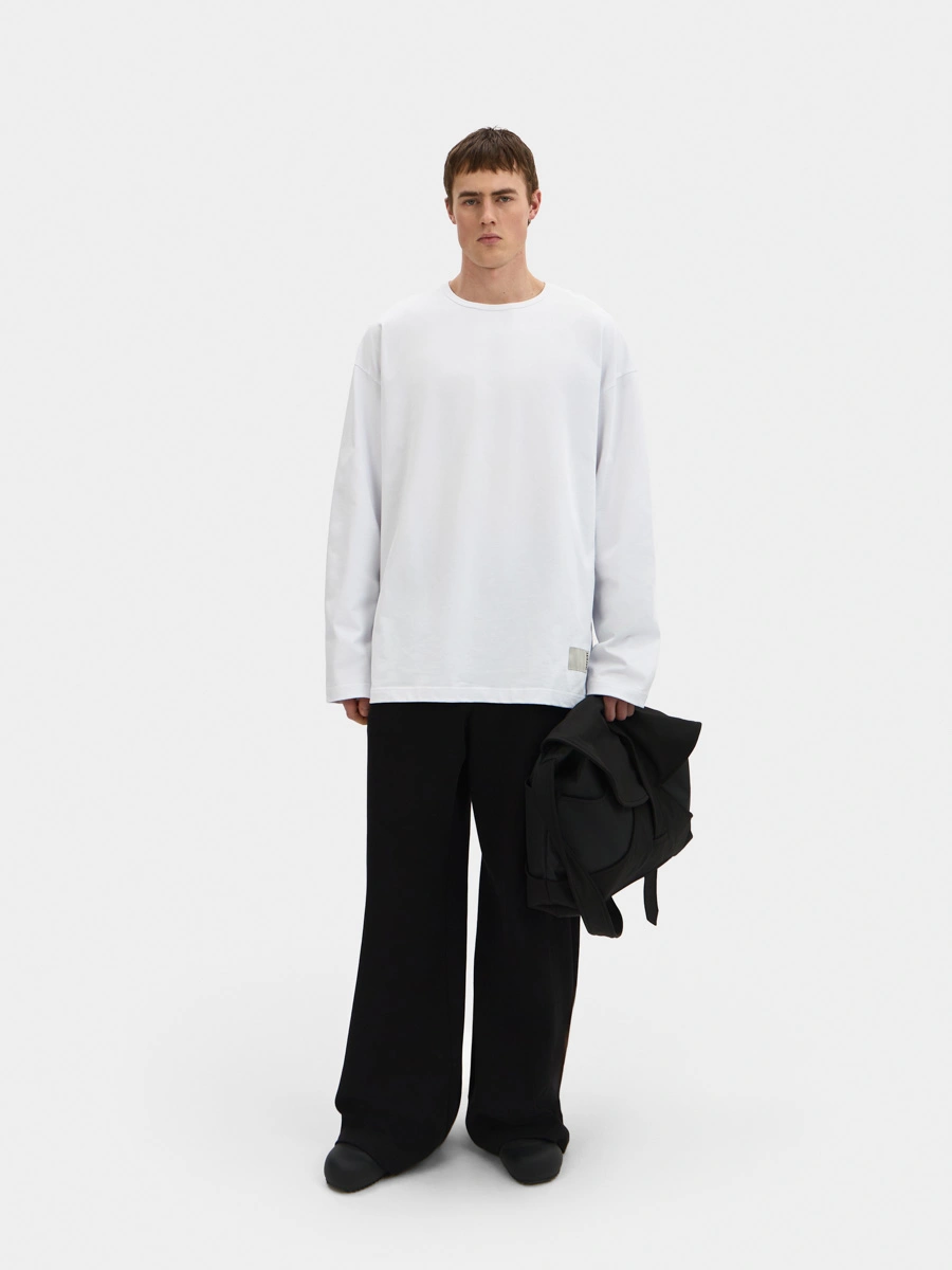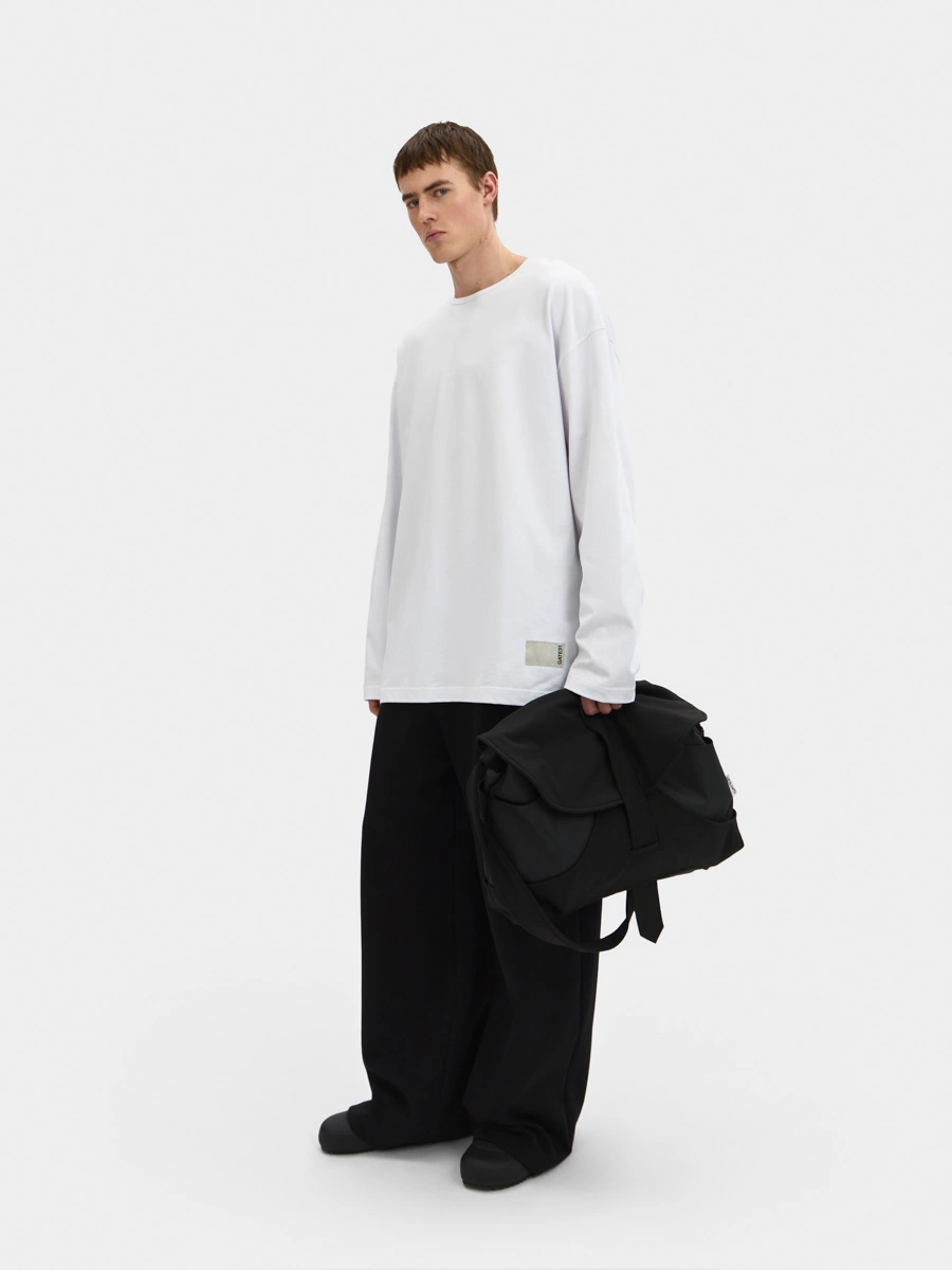 Мужской лонгслив Base оверсайз из плотного хлопка. Лонгслив имеет прямой крой, спущенную линию плеча, круглую горловину с окантовкой. Слева внизу находится фирменная жаккардовая нашивка GATE31. Лонгслив Base оверсайз - стильная и универсальная вещь в Вашем гардеробе.