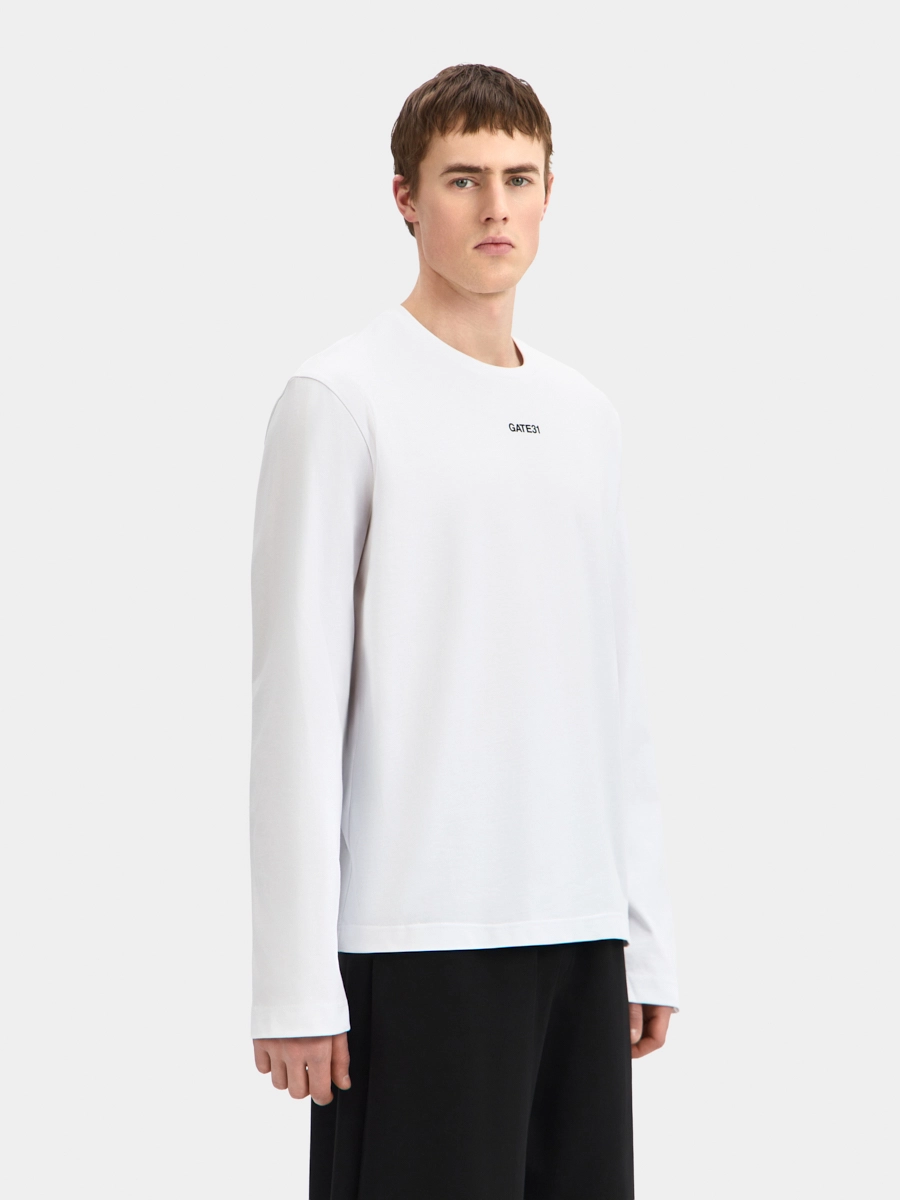 Лонгслив GATE31 с логотипом выполнен из хлопкового трикотажа.
