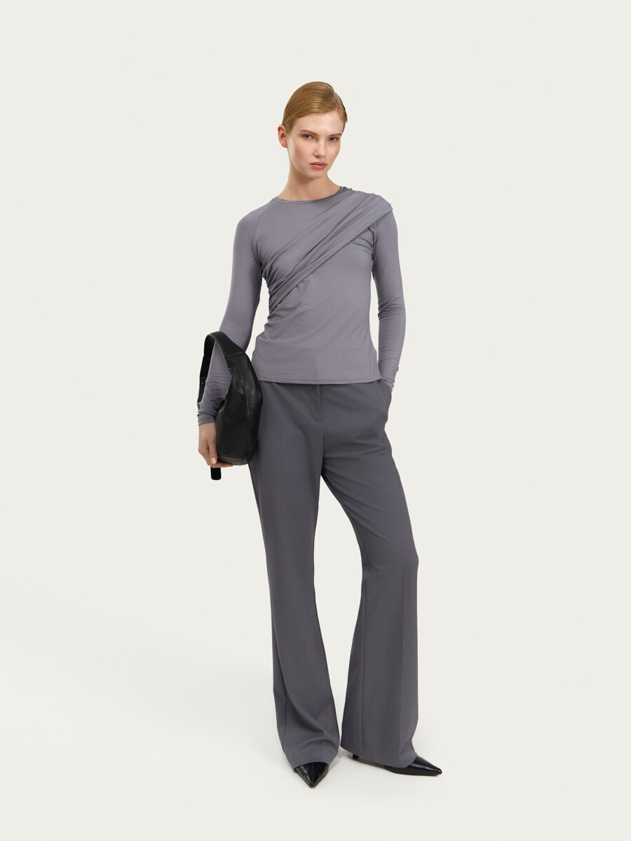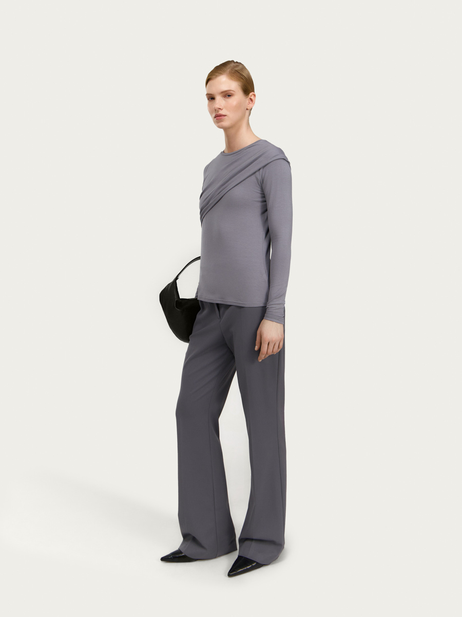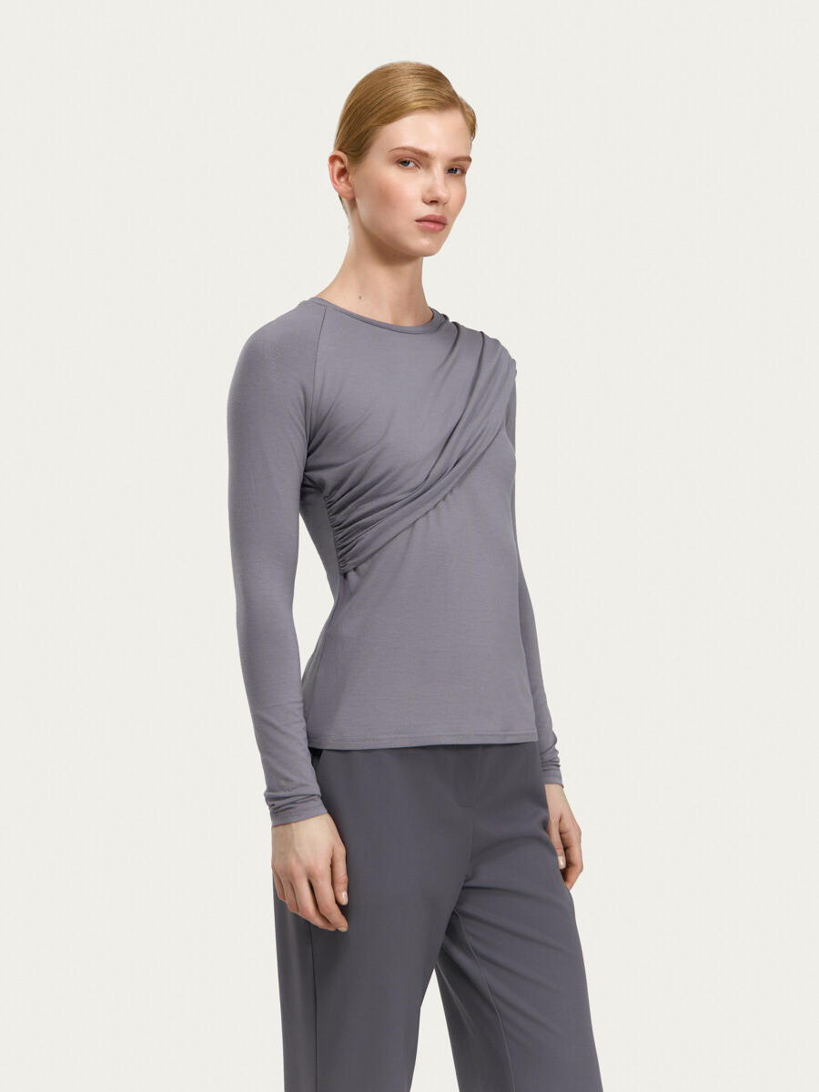 Лонгслив Регина прилегающего силуэта выполнен из тонкого мягкого трикотажа.