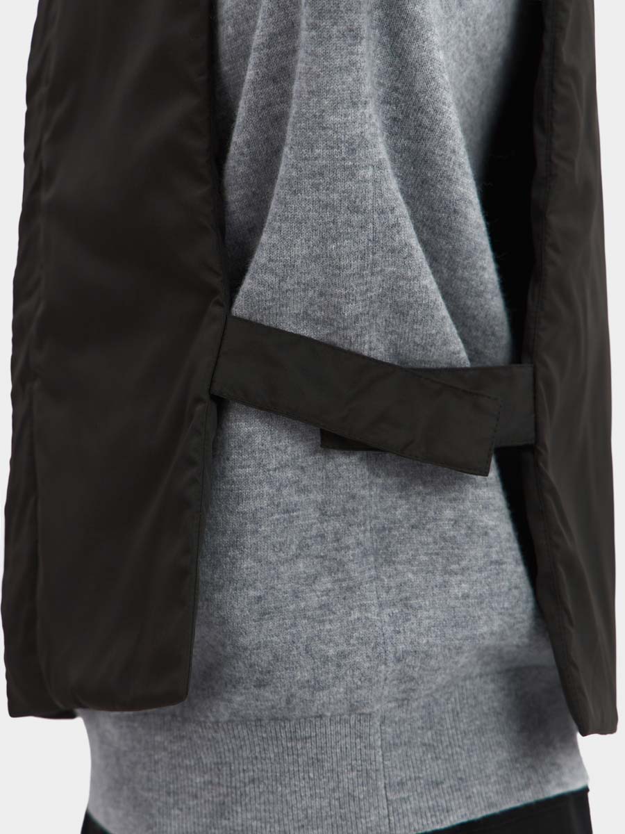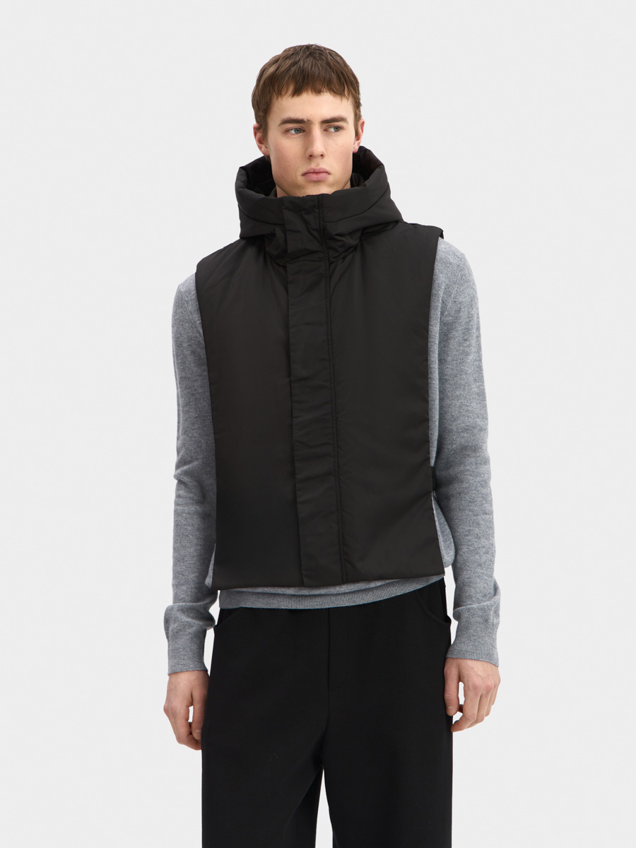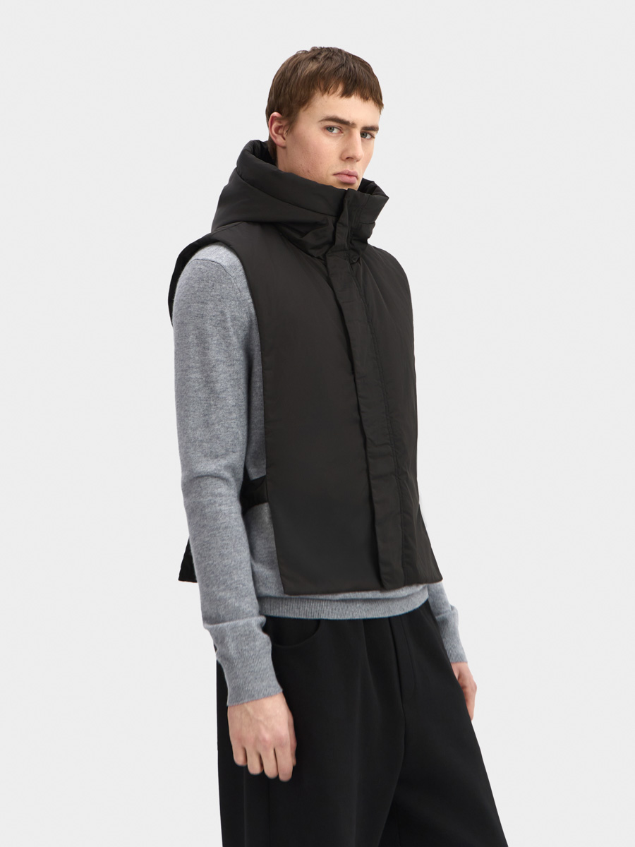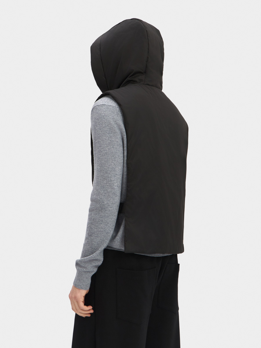 Удобная и функциональная манишка Дублин с капюшоном на тонком утеплителе отлично дополнит любой Ваш образ с курткой или пальто, защитив от непогоды.