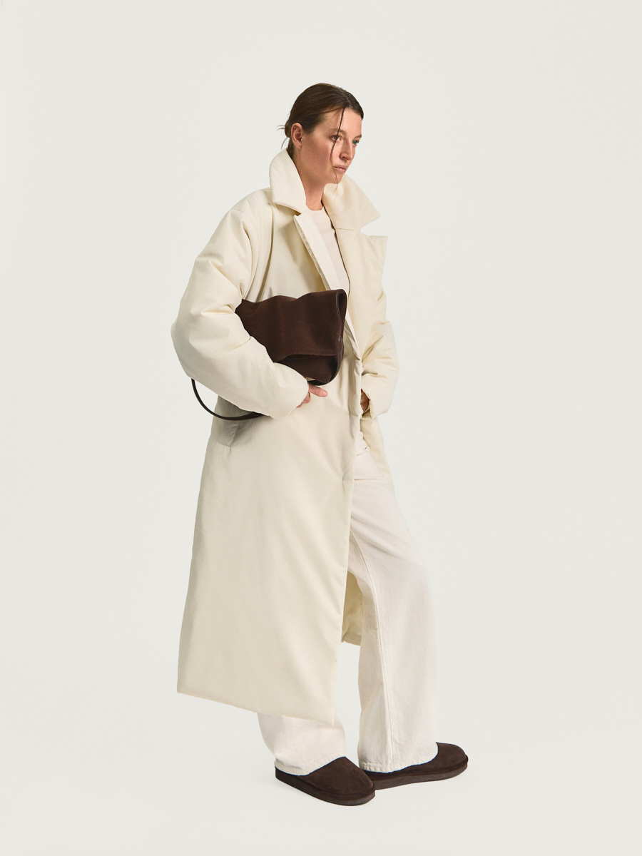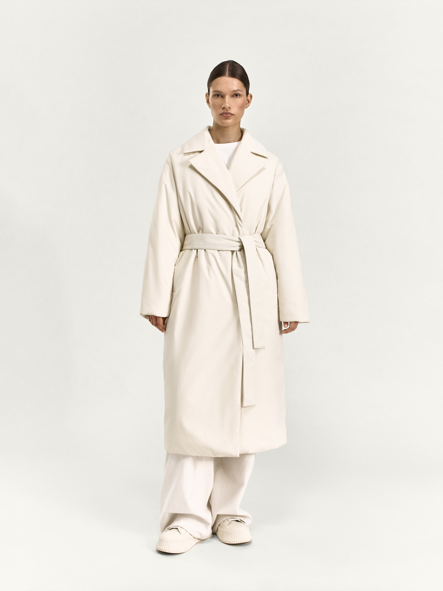 Пальто Реймс стеганое увеличенного объема с широким воротником и съемным поясом. В изделии предусмотрены карманы с листочками. Благодаря плащевой ткани и мягкому утеплителю пальто Реймс согреет Вас в стужу и защитит от непогоды. Уютное и практичное пальто станет особенным в Вашем гардеробе.