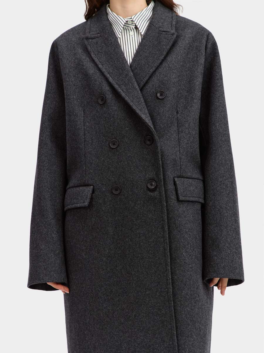 Пальто Трентон оверсайз силуэта выполнено из шерстяной пальтовой ткани.