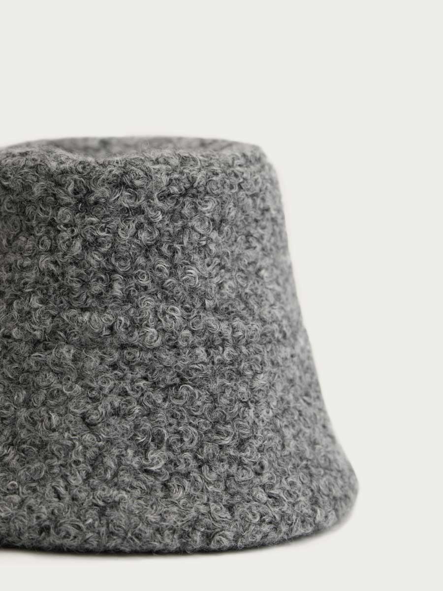 Панама Копенгаген выполнена из шелковистого искусственного меха с фактурой, имитирующей мех барашка. Панама с небольшими полями и тульей выполнена на хлопковой подкладке.