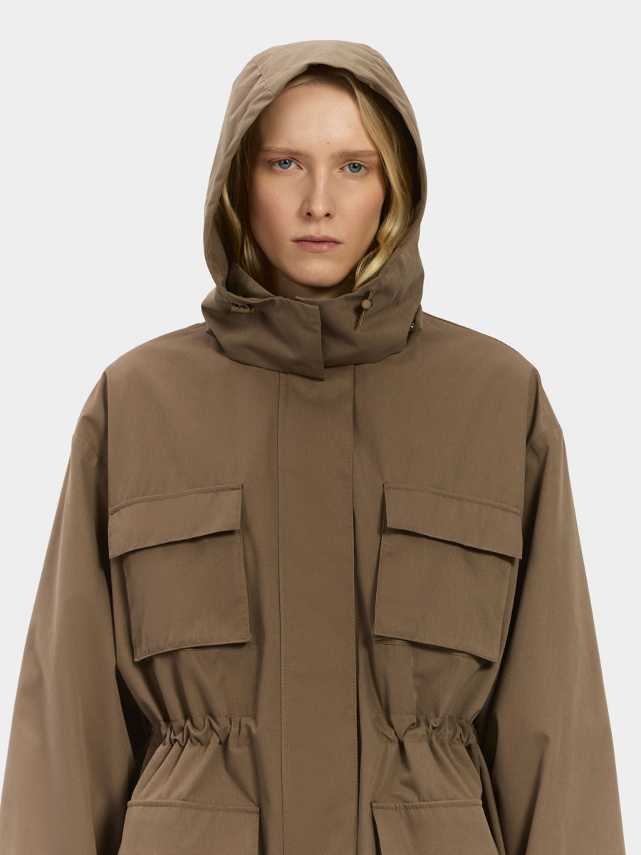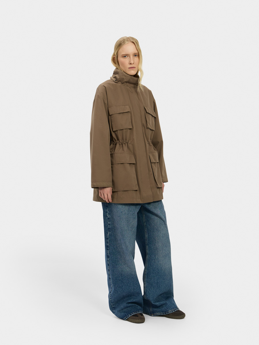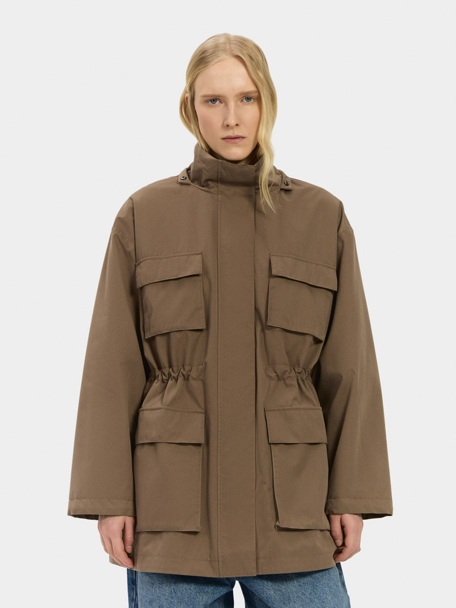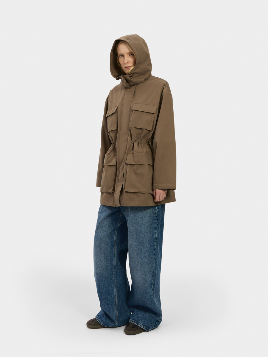 Парка Штутгарт выполнена из плащевой ткани с мембраной. Парка имеет спущенную линию плеча, кулису по талии, четыре объёмных накладных кармана с клапанами и съёмный капюшон. Изделие застёгивается на молнию и кнопки вдоль планки.