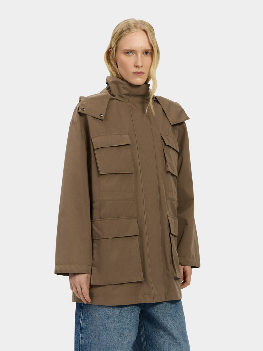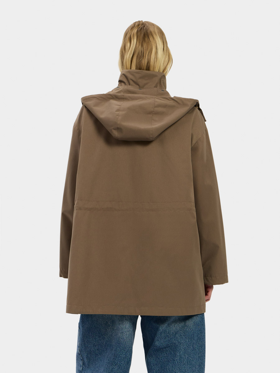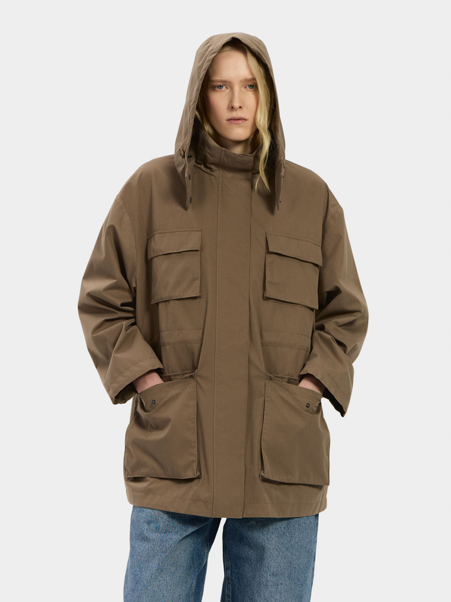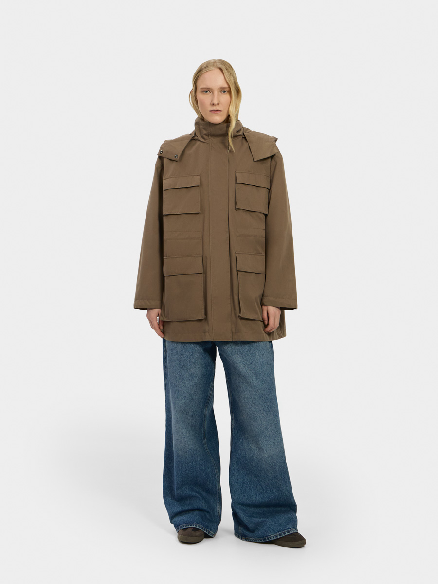 Парка Штутгарт выполнена из плащевой ткани с мембраной. Парка имеет спущенную линию плеча, кулису по талии, четыре объёмных накладных кармана с клапанами и съёмный капюшон. Изделие застёгивается на молнию и кнопки вдоль планки.