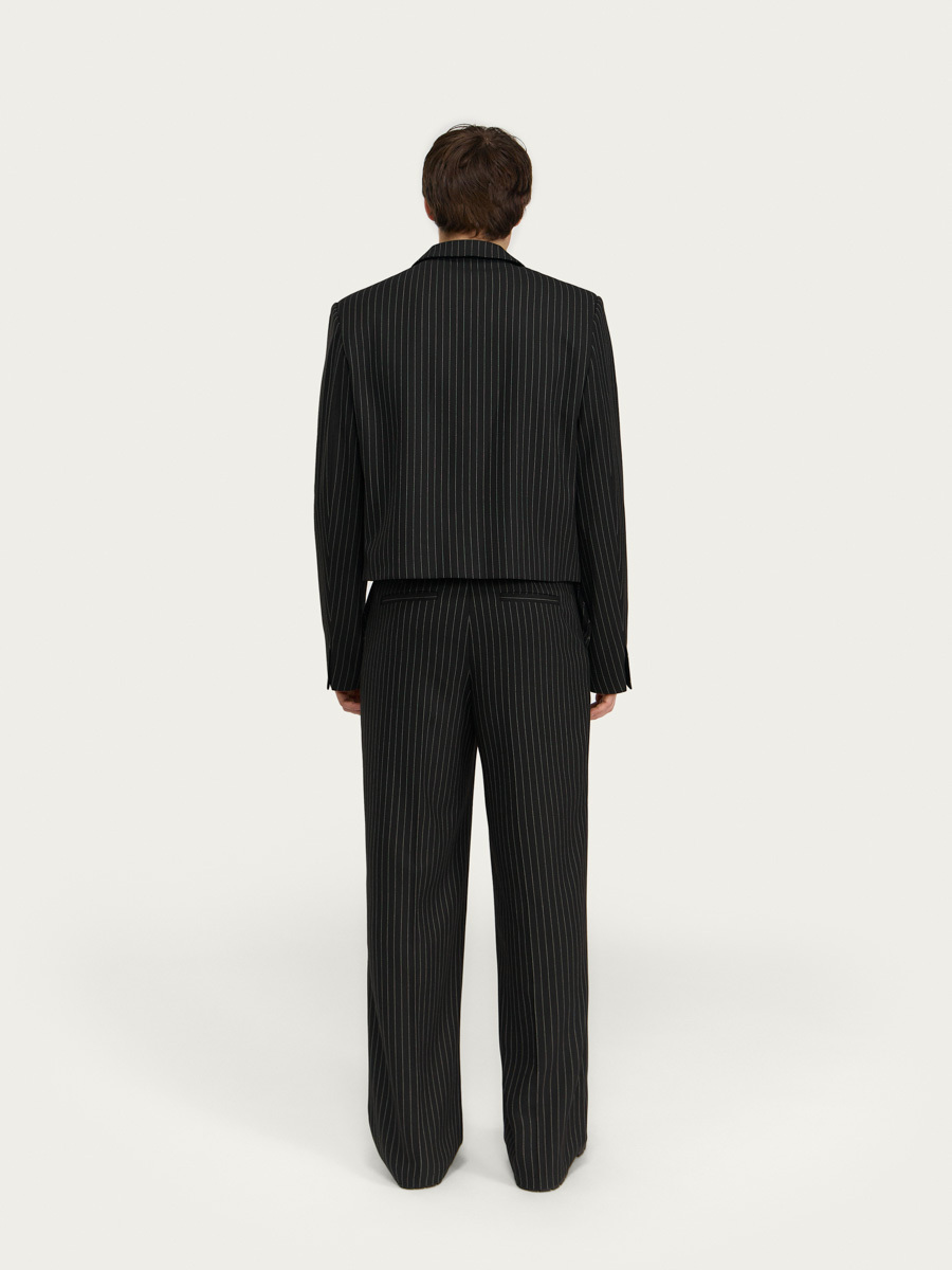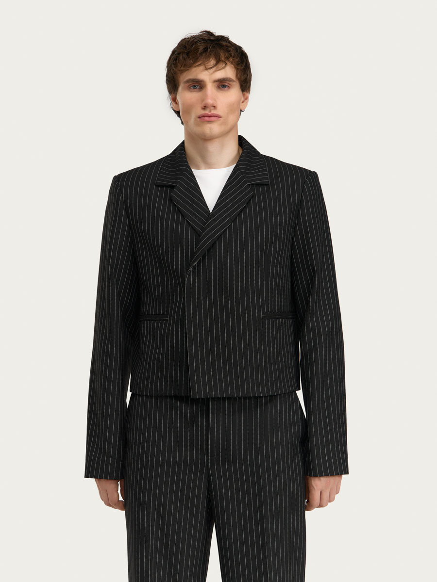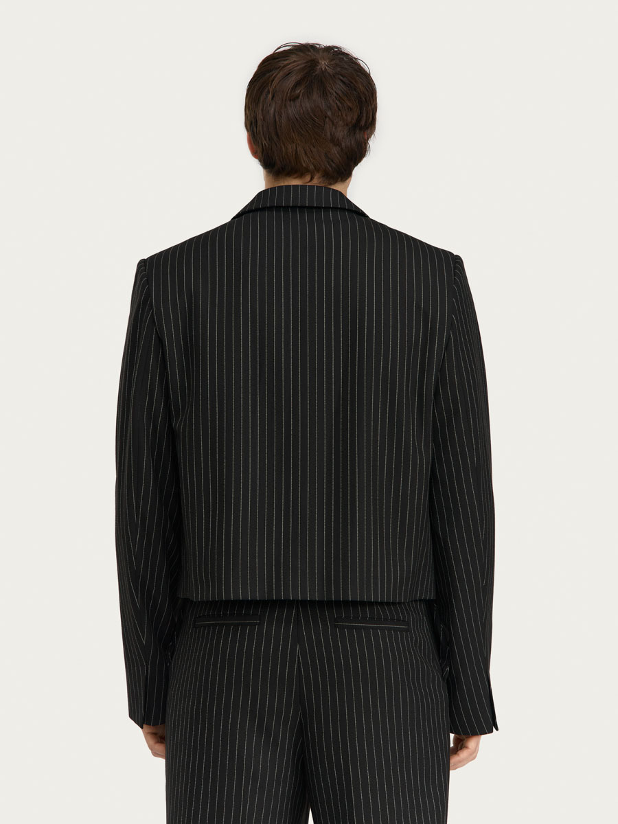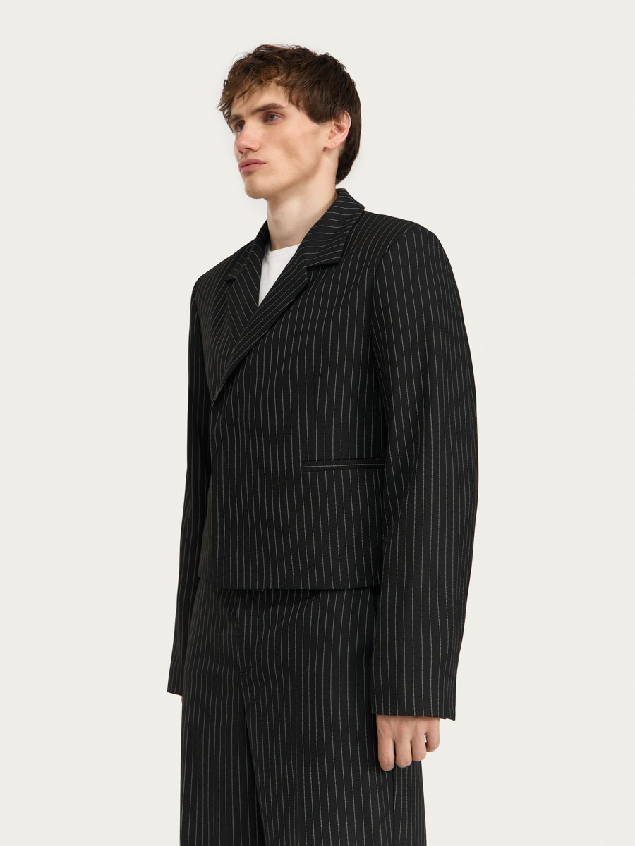 Укороченный пиджак Амстердам выполнен из костюмной ткани в полоску.