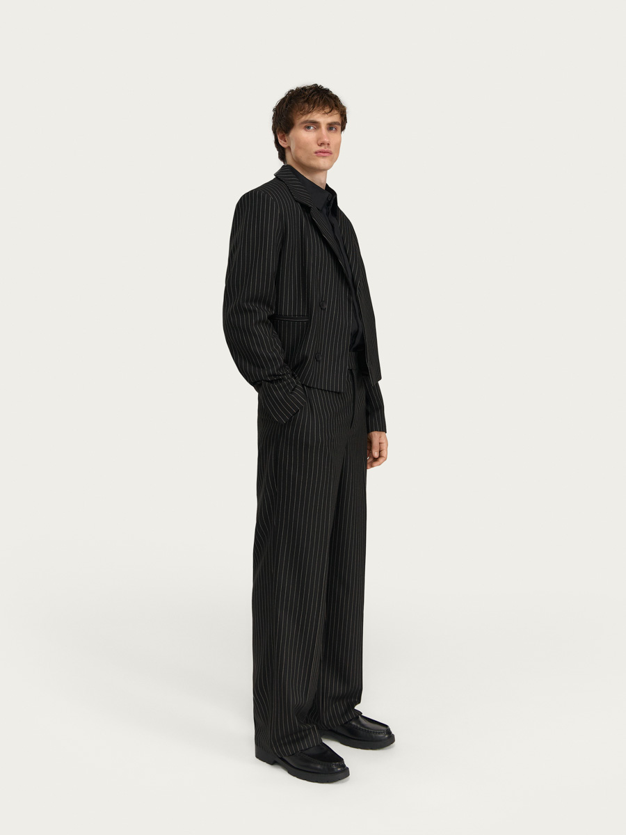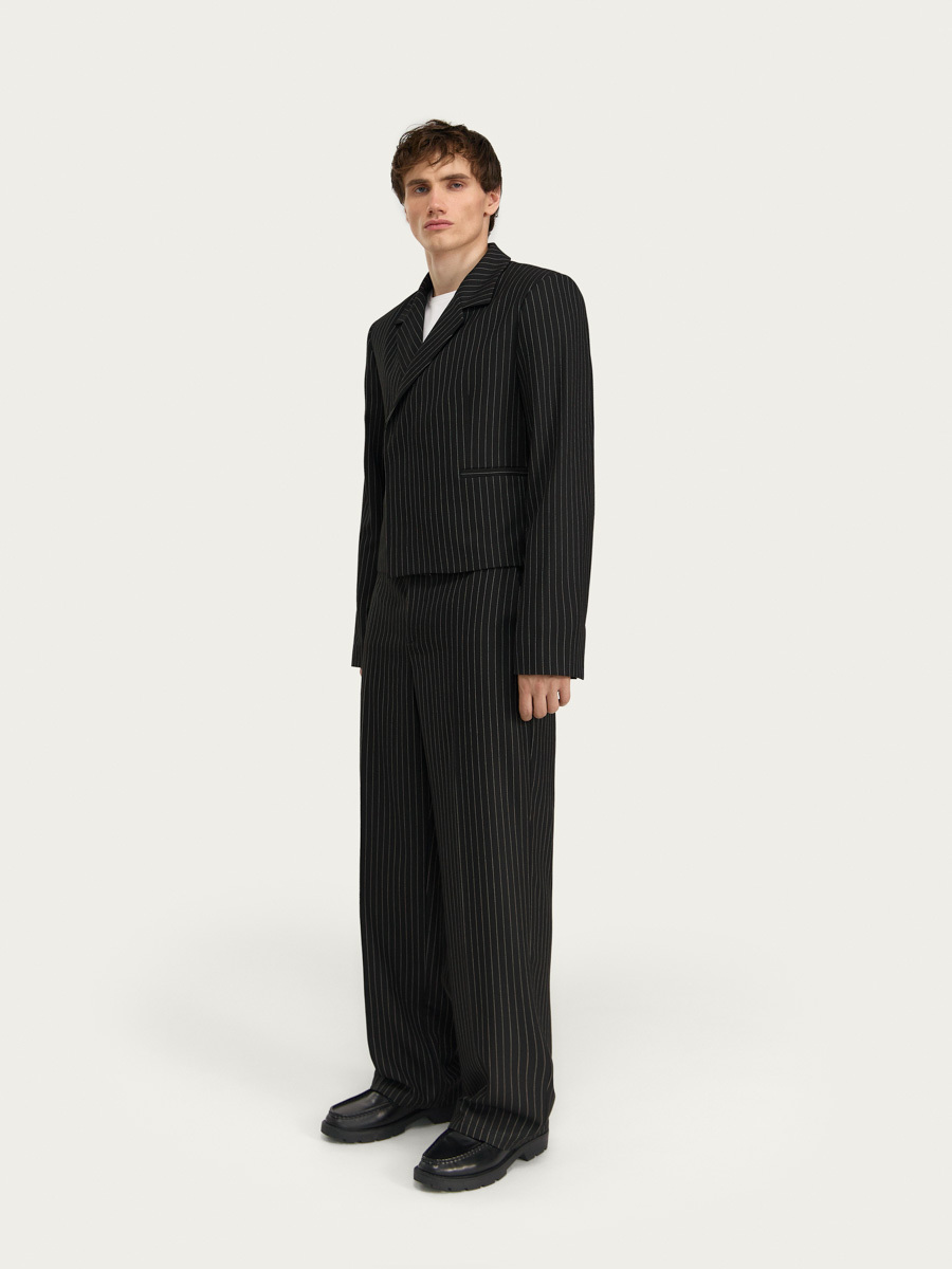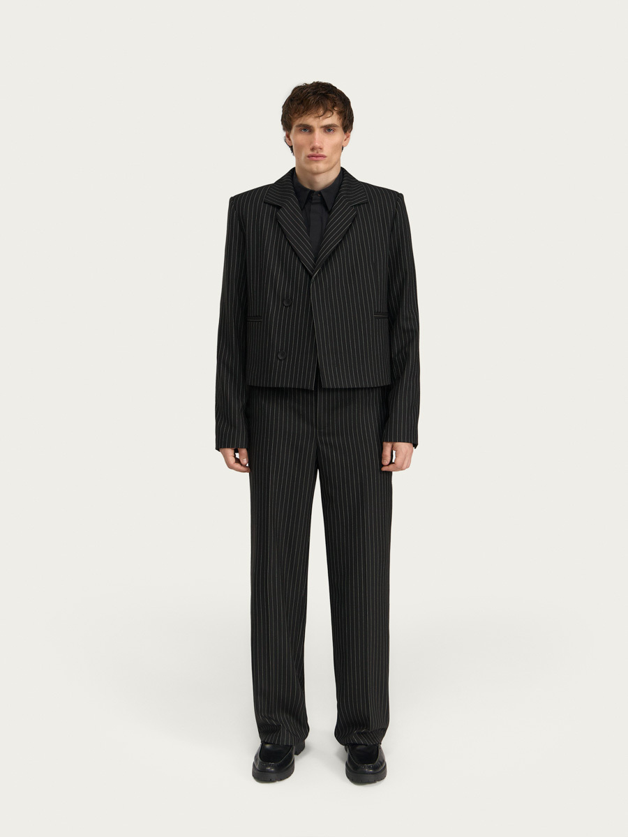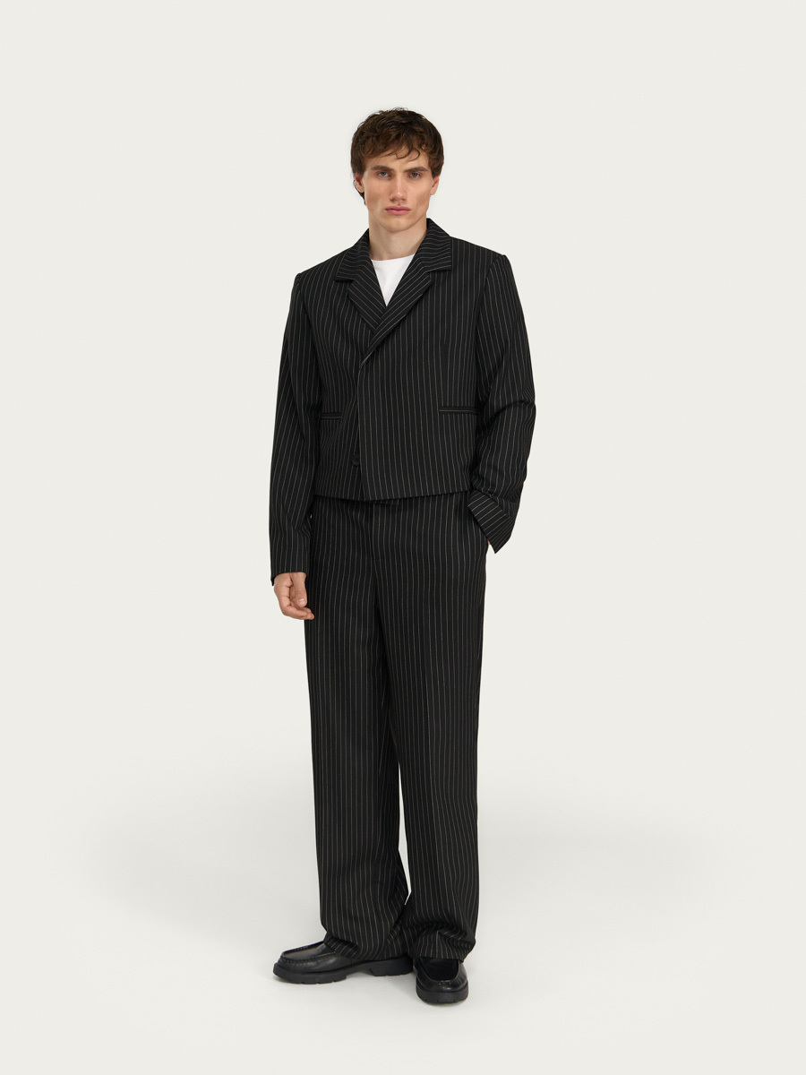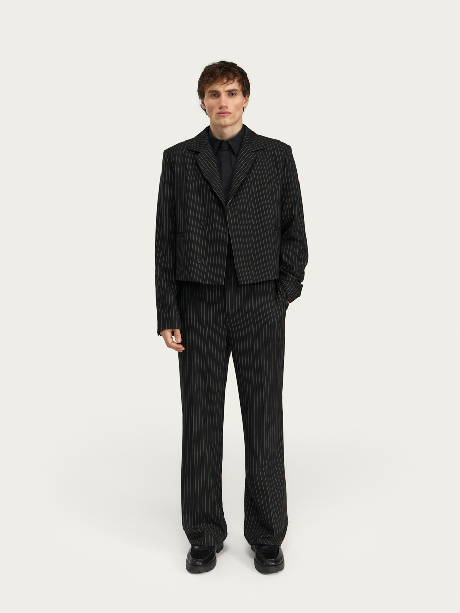 Укороченный пиджак Амстердам выполнен из костюмной ткани в полоску.