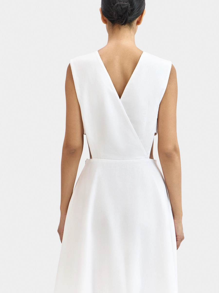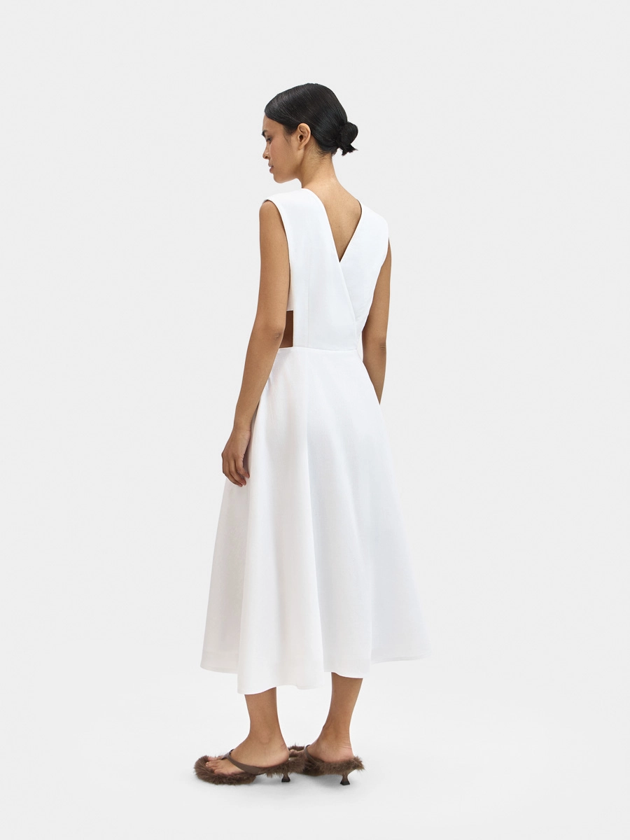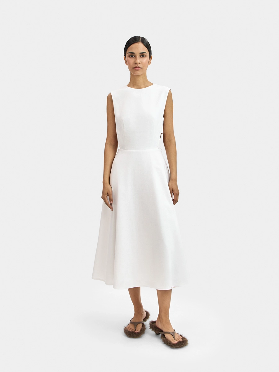 Платье Вайнона без рукавов с отрезной талией имеет полуприлегающий силуэт вверху и юбку-полусолнце внизу, что, безусловно, создает элегантный и очень женственный силуэт.
