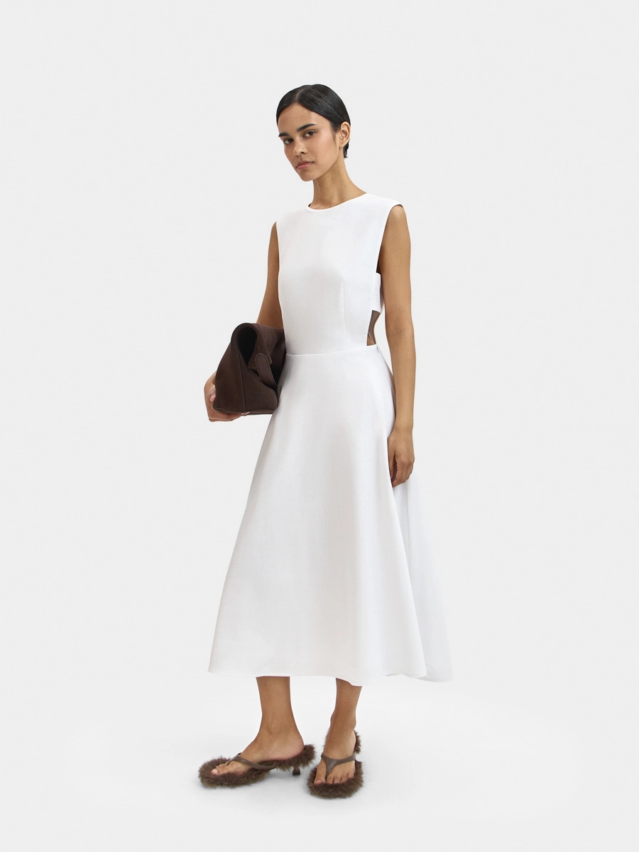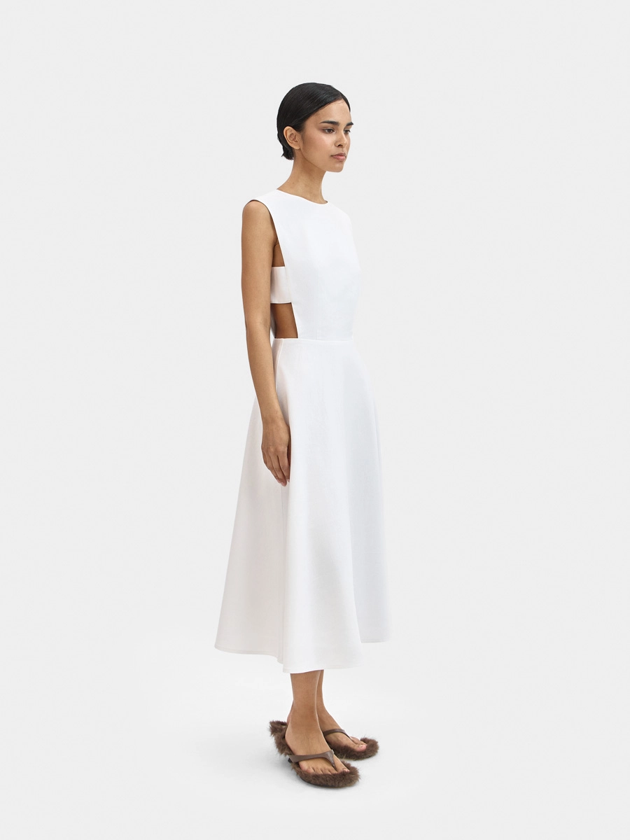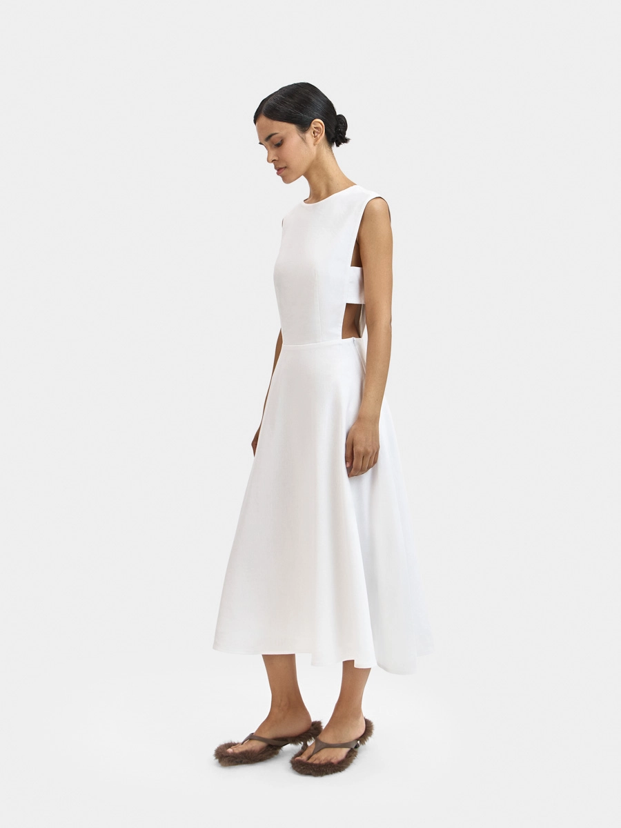 Платье Вайнона без рукавов с отрезной талией имеет полуприлегающий силуэт вверху и юбку-полусолнце внизу, что, безусловно, создает элегантный и очень женственный силуэт.