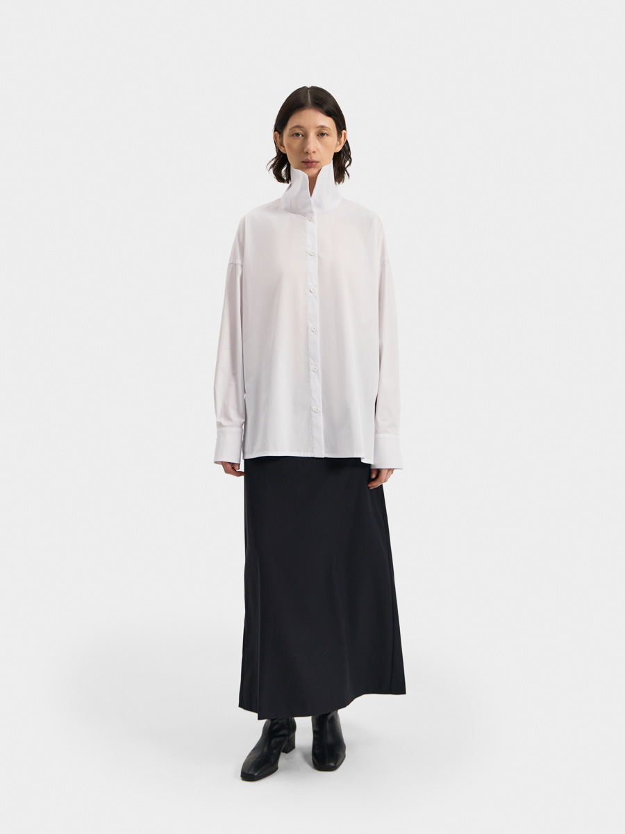 Стильная и лаконичная рубашка Бланш с высоким воротником дополнит Ваш гардероб.