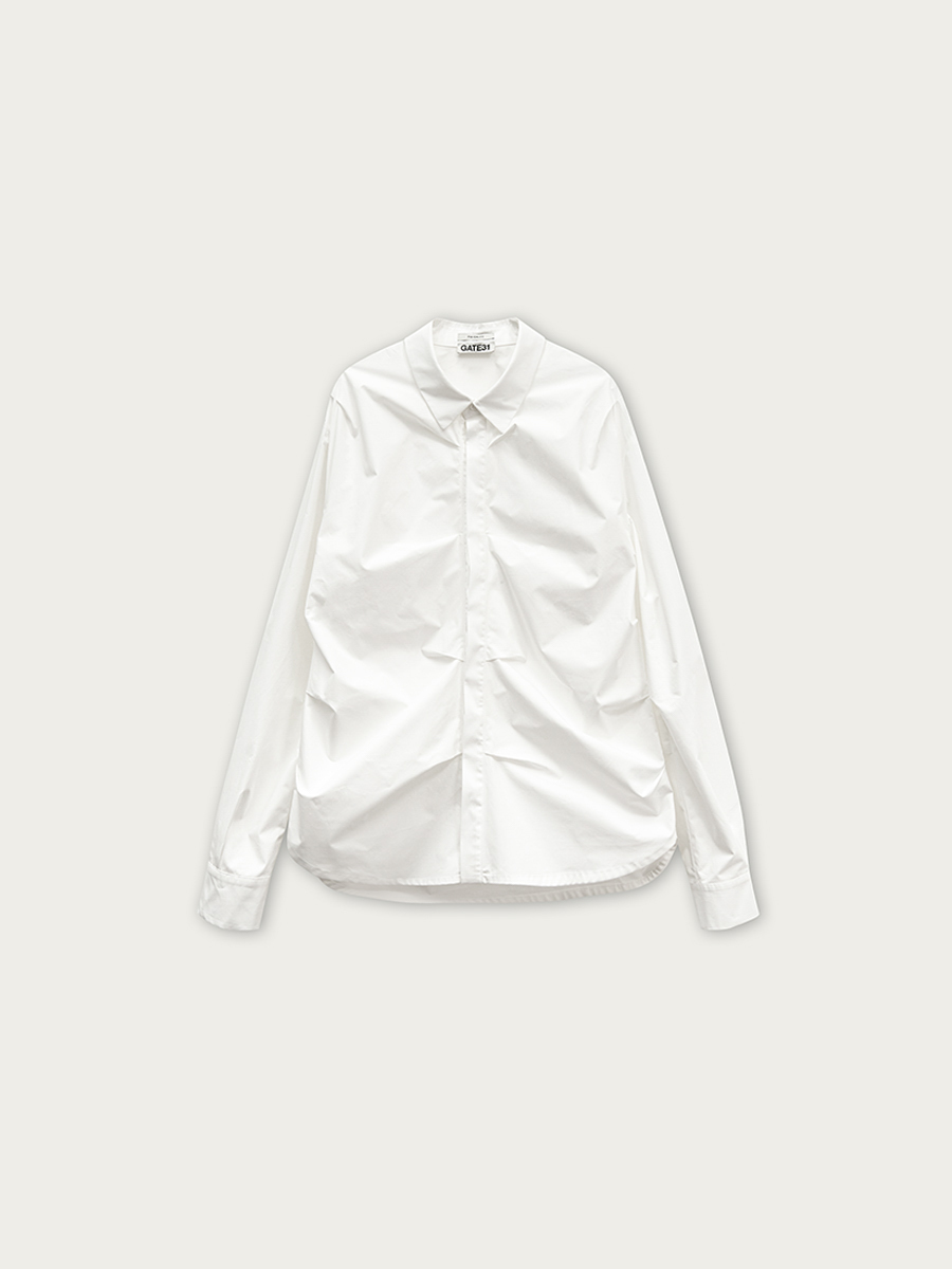 Мужская рубашка Луис прямого силуэта с декоративными защипами. Рубашка имеет классический воротник со стойкой, отрезную планку, супатную застежку на петли и пуговицы, скругленную линию низа и длинный рукав на притачной манжете с застежкой на пуговицу.