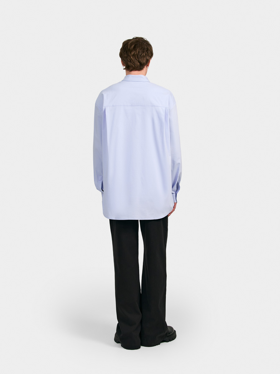 Мужская рубашка Мартин из хлопковой ткани. Рубашка имеет прямой силуэт, длинные рукава, рубашечный воротник, супатную застёжку на пуговицы, кокетку и складки по спинке. Рукава с манжетами и планками с застёжкой на пуговицы. Линия низа фигурная с небольшим удлинением по спинке. На правой полочке накладной карман, заходящий под планку супатной застёжки. Рубашка Мартин дополнит Ваш гардероб.