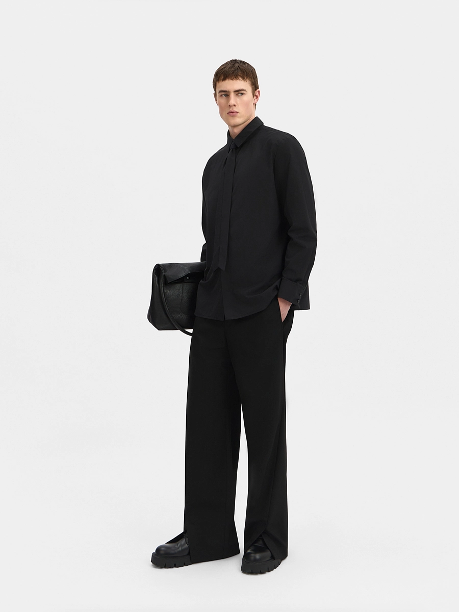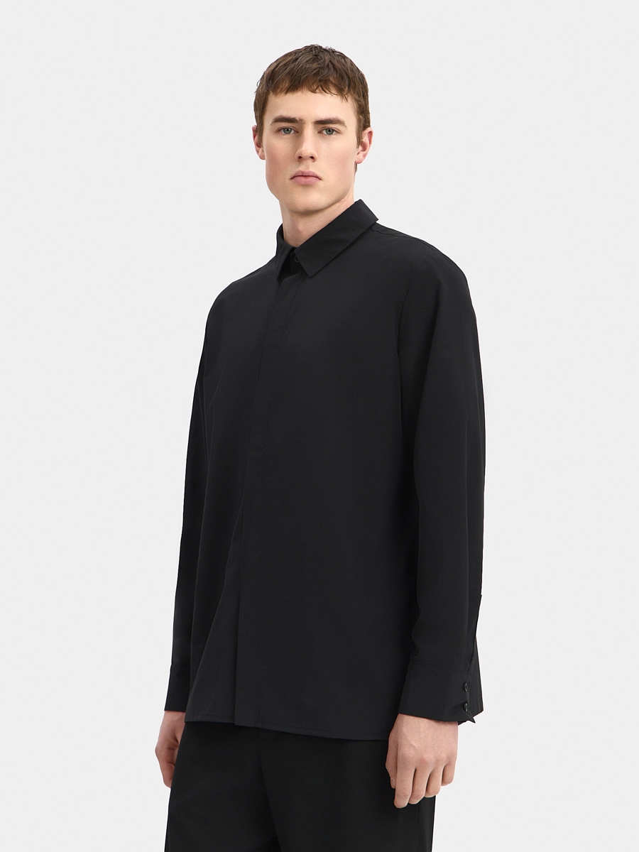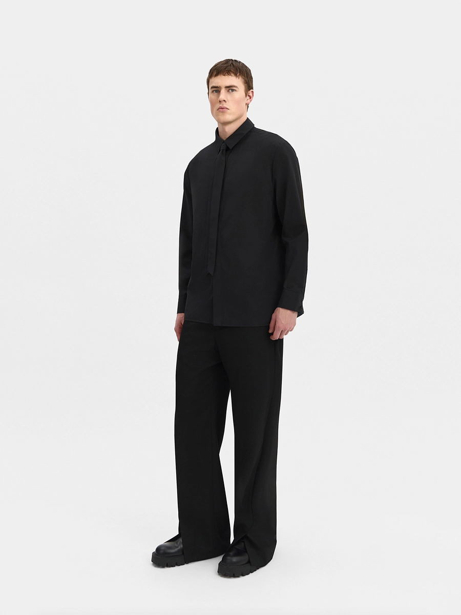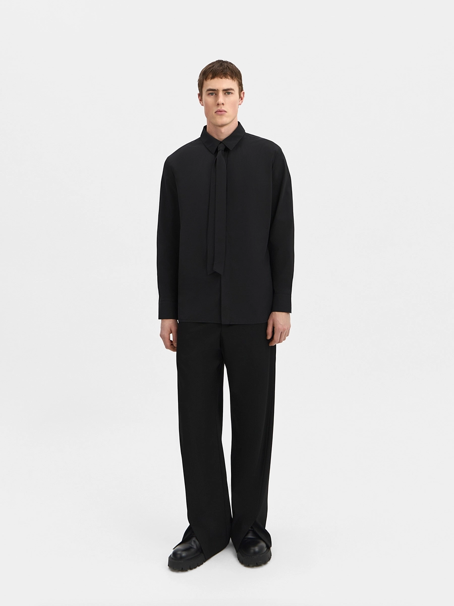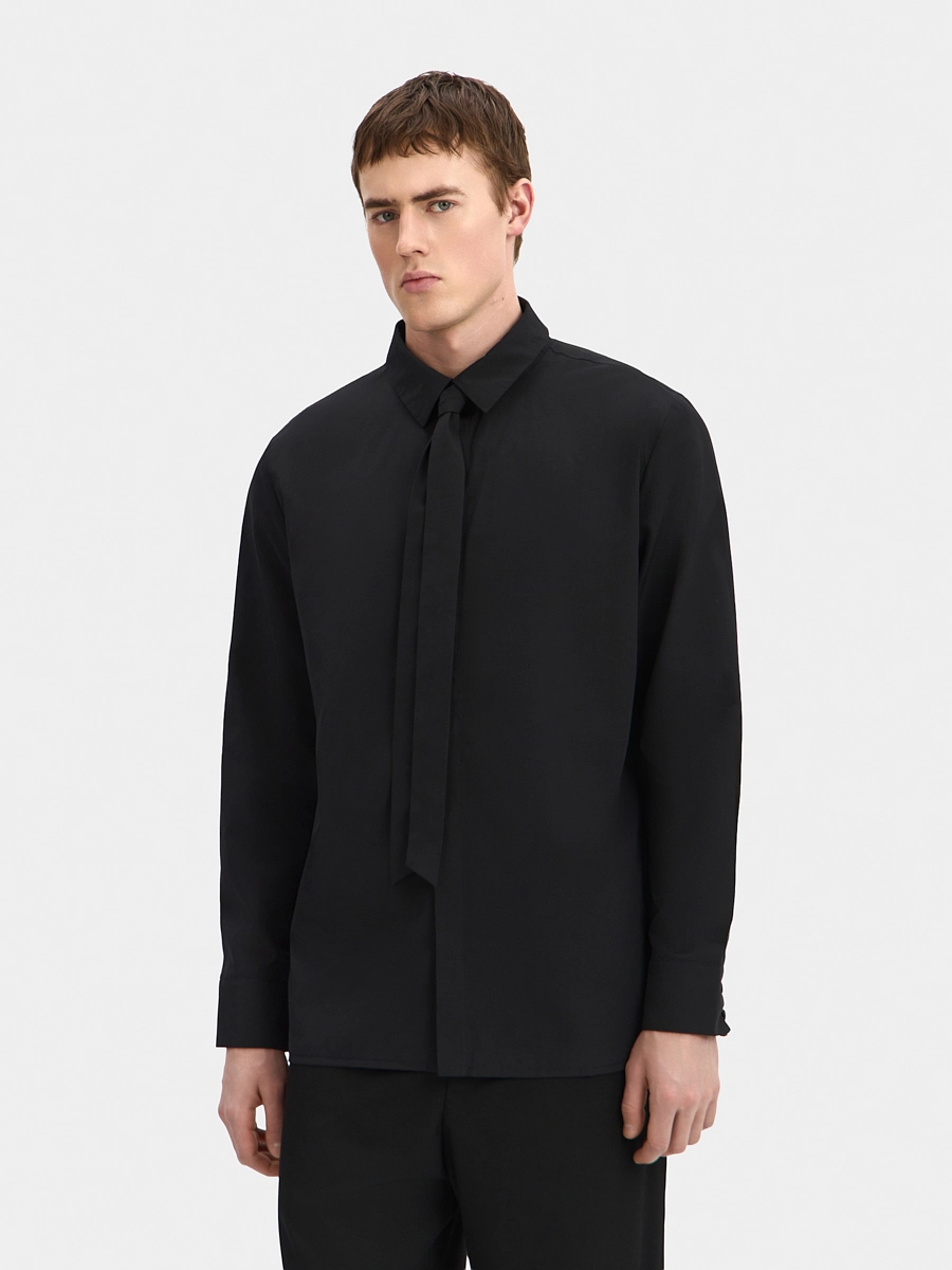 The shirt has a matching fabric narrow straight-cut tie detail. You can wear it with or without the tie, creating looks to suit your mood.