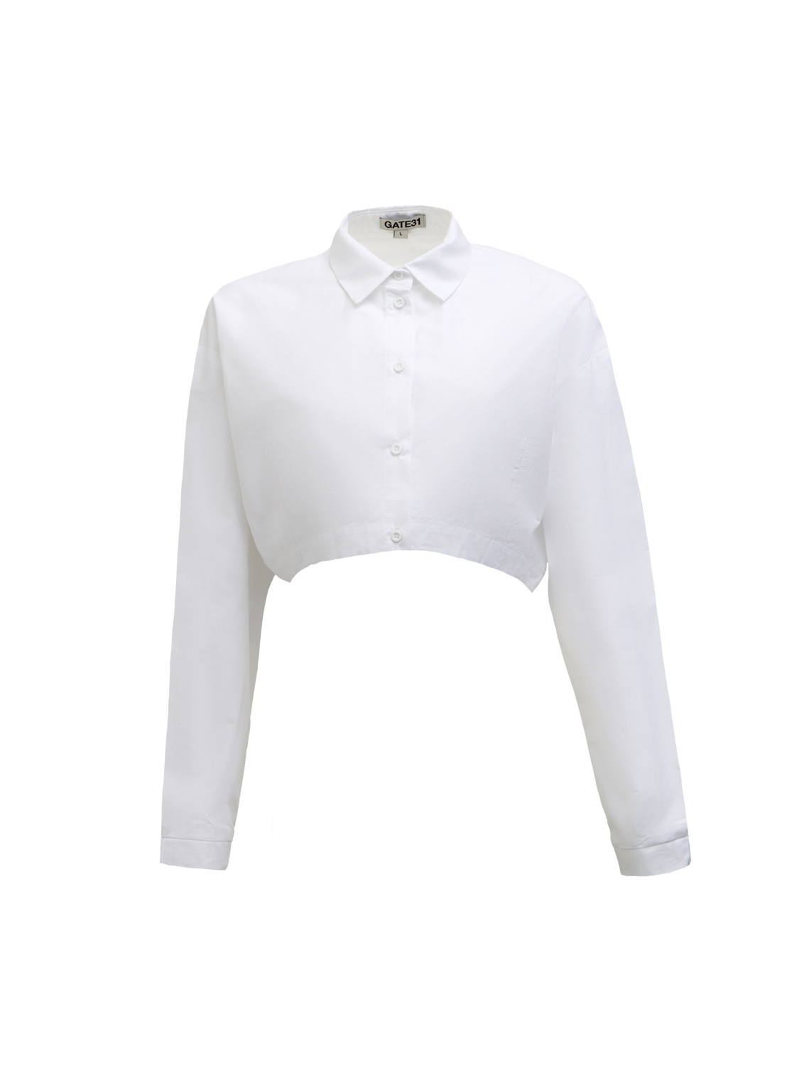 Укороченная рубашка Мэг имеет прямой силуэт, спущенную линию плеча, классический рубашечный воротник, длинные рукава, супатную застёжку на пуговицы и фигурную линию низа спереди. Спереди по низу вытачки, формирующие силуэт изделия. Низ спинки и низ рукавов сзади - на резинке. Данная модель рубашки дополнит Ваш гардероб.