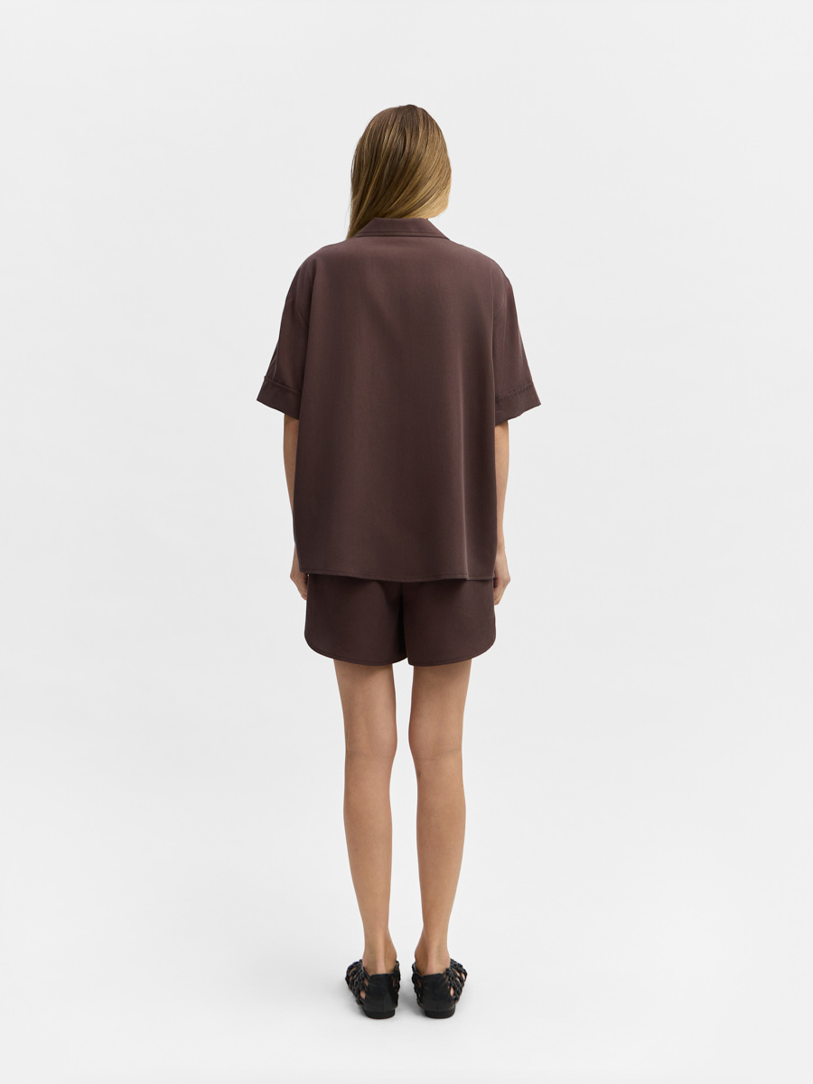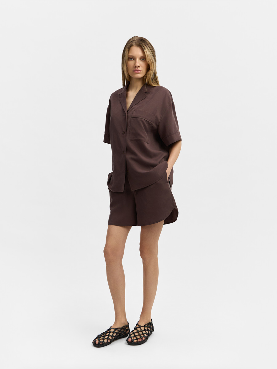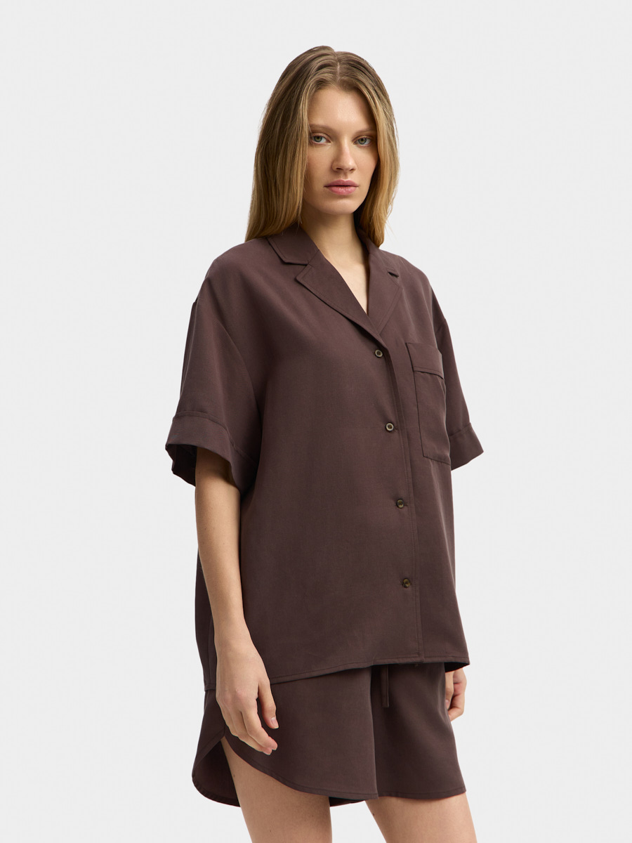 Рубашка Стефани выполнена из бархатистого тенсела с добавлением льна.