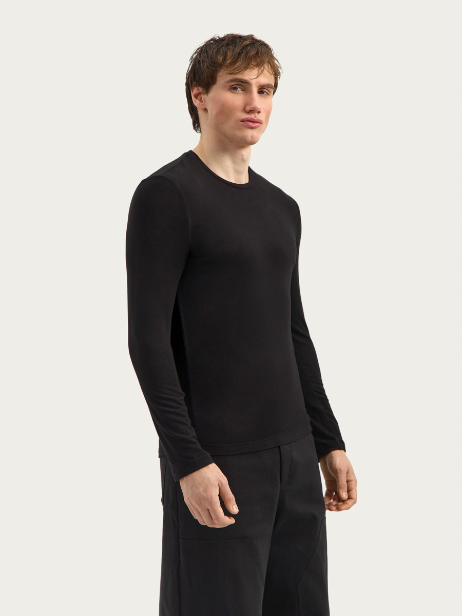 Тонкий трикотаж из вискозы — это легкое, эластичное вязаное полотно, которое производится из натуральной целлюлозы. Он мягкий, приятный на ощупь, гладкий, может иметь легкий блеск, хорошо драпируется и слегка просвечивает. Материал пропускает воздух, хорошо впитывает влагу, не электризуется.