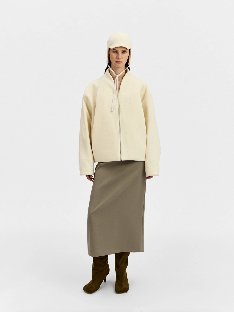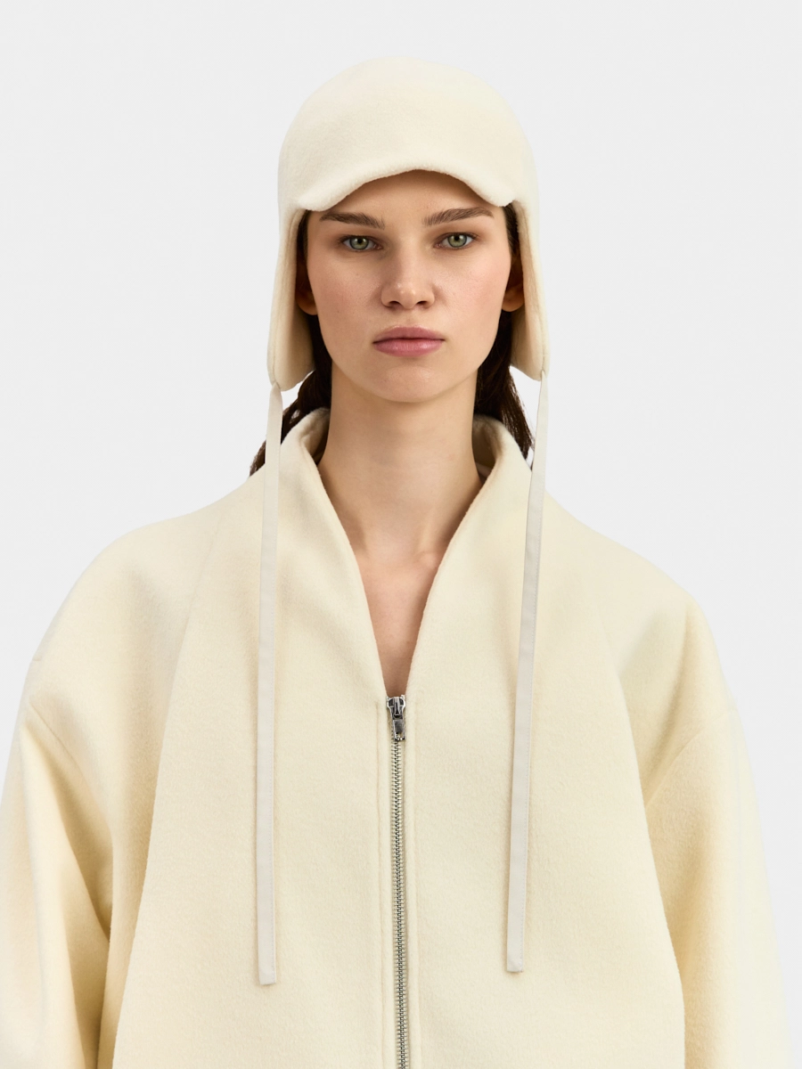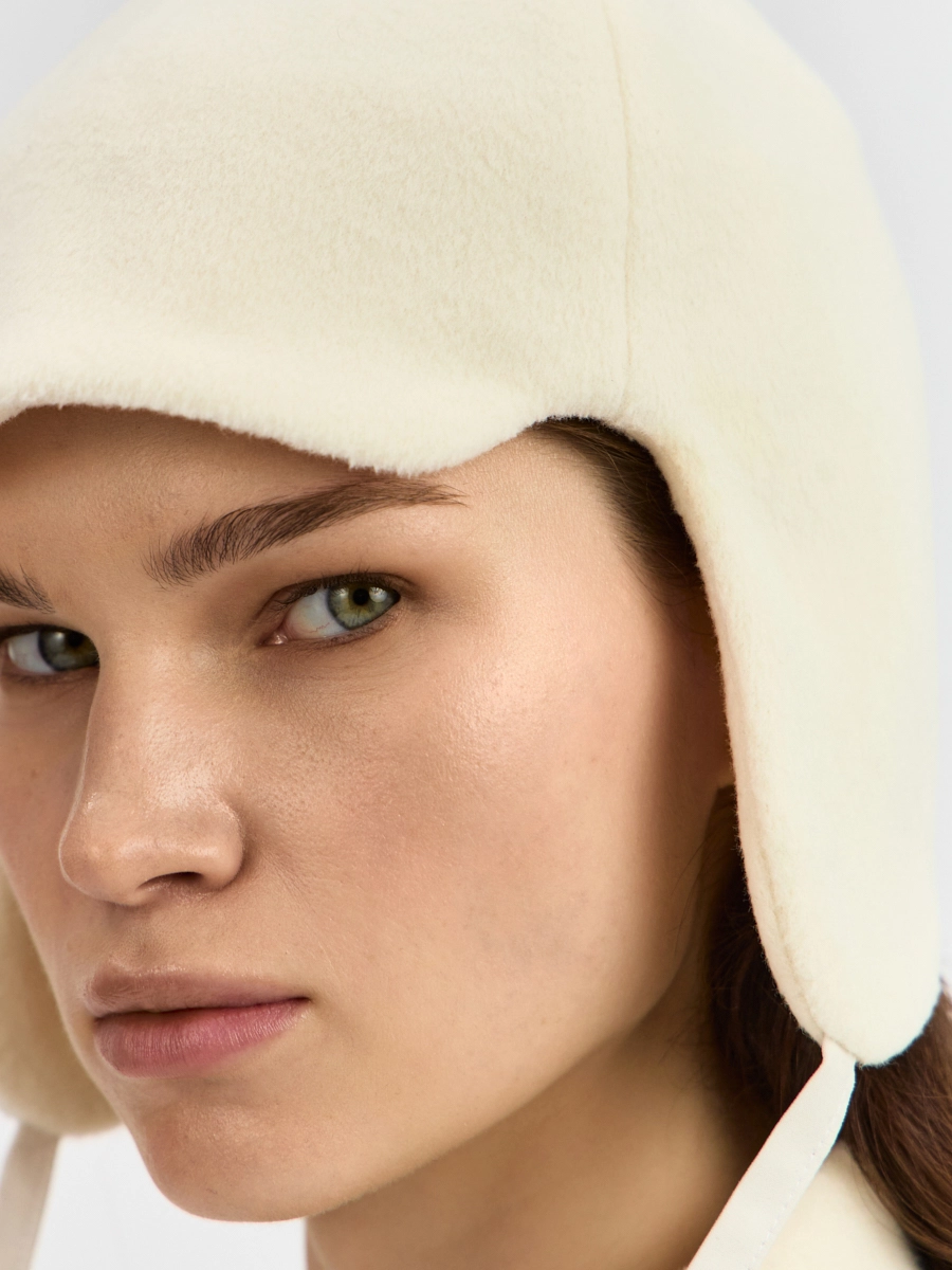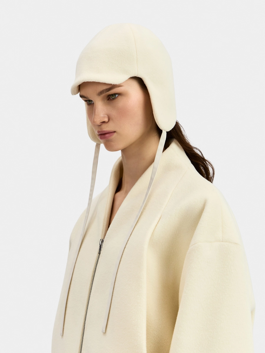 Шапка Анже выполнена из пальтовой ткани.