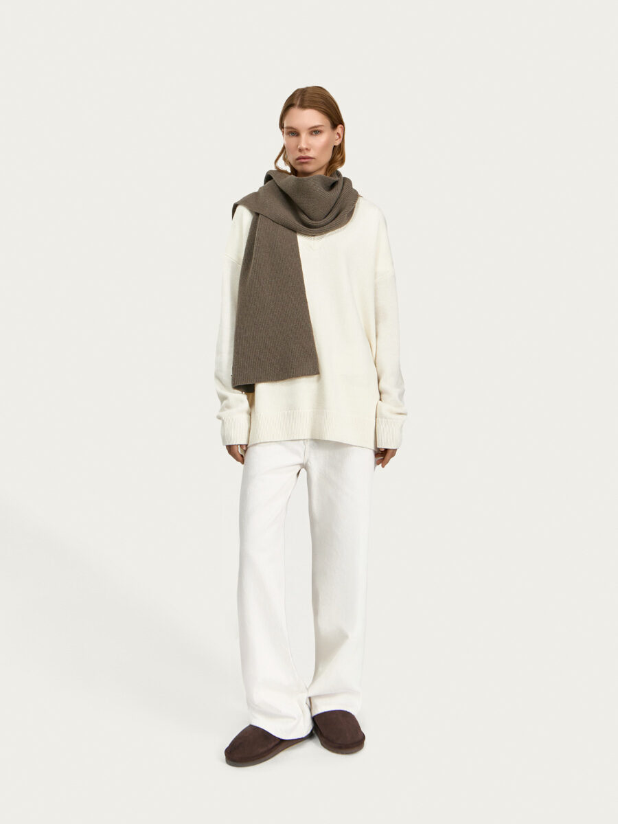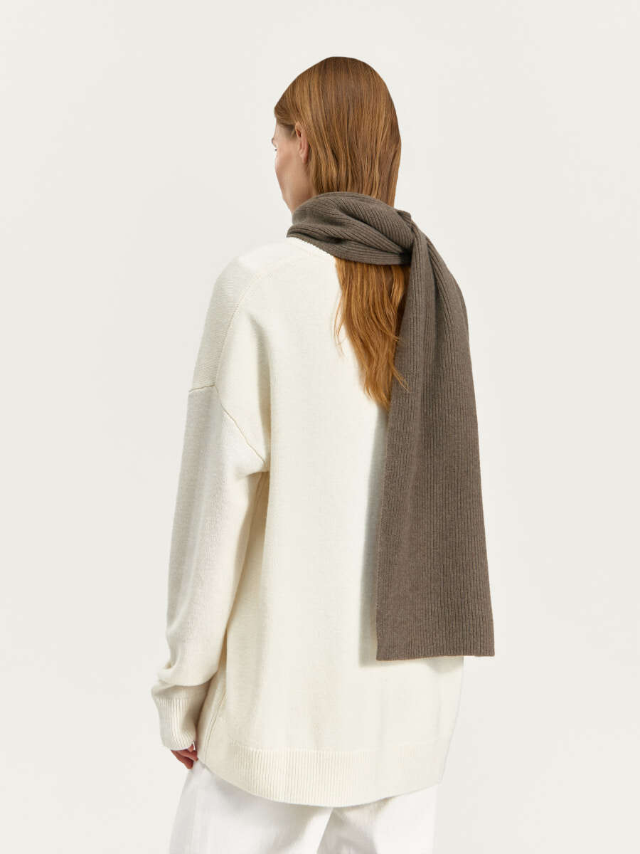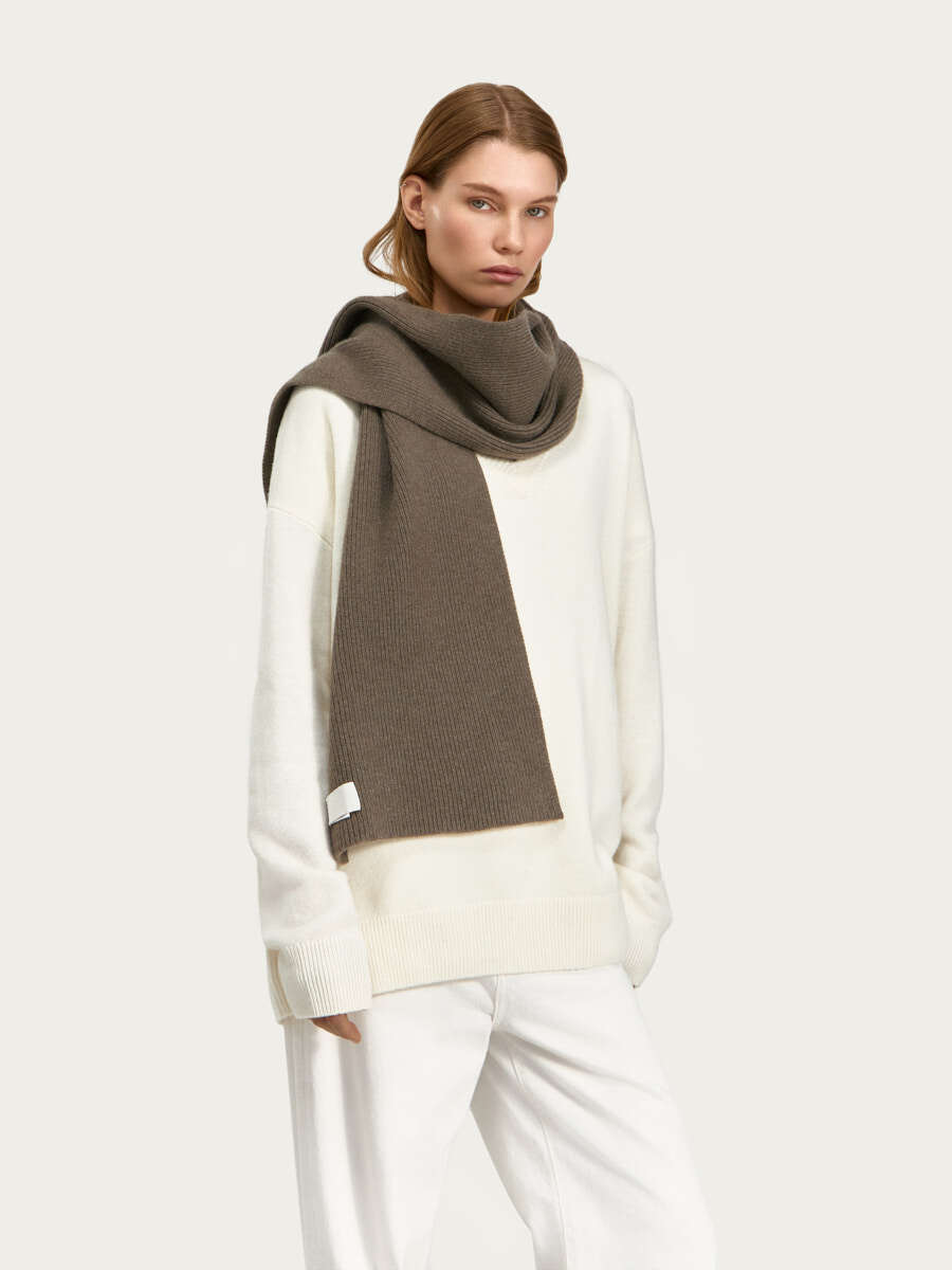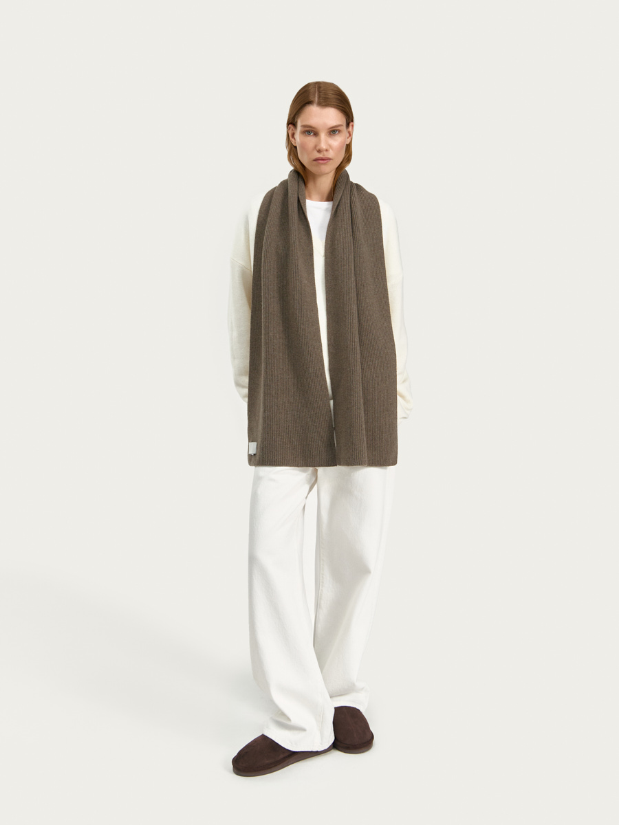 Уютный и теплый шарф из шерсти мериноса, связанный “резинкой”.