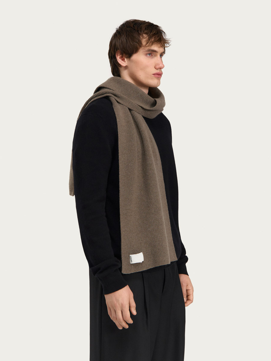 Уютный и теплый шарф из шерсти мериноса, связанный “резинкой”.
