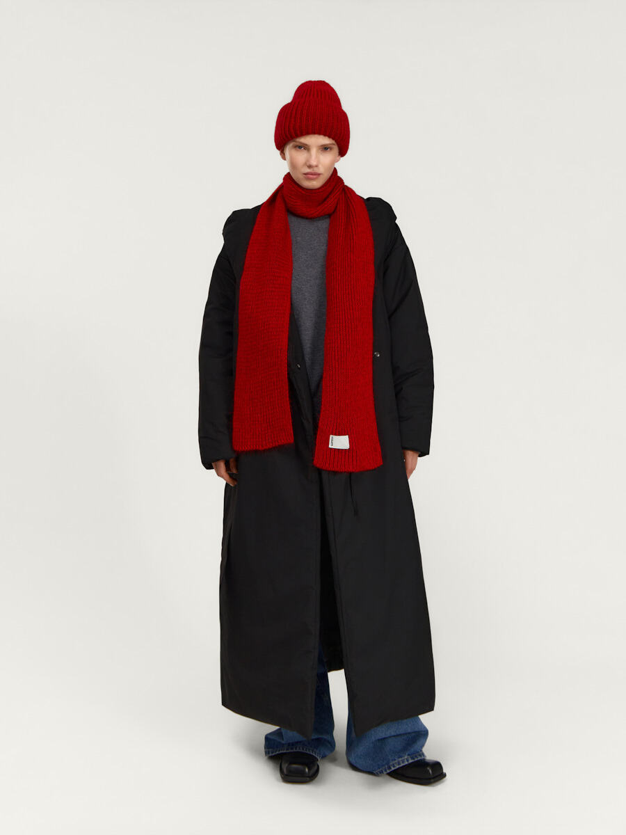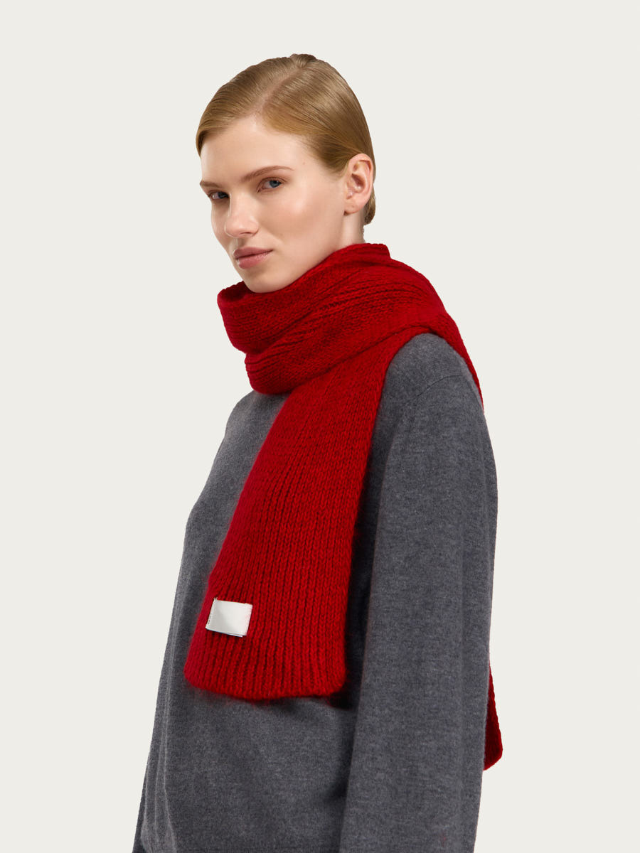 Шарф имеет оптимальную длину, которая позволяет обернуть шарф вокруг шеи и создать стильный образ. Изделие связано “резинкой”.
