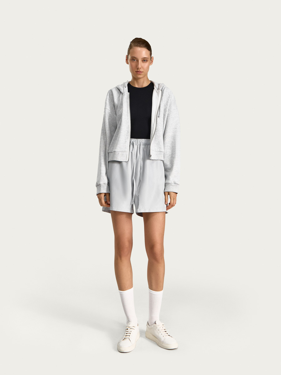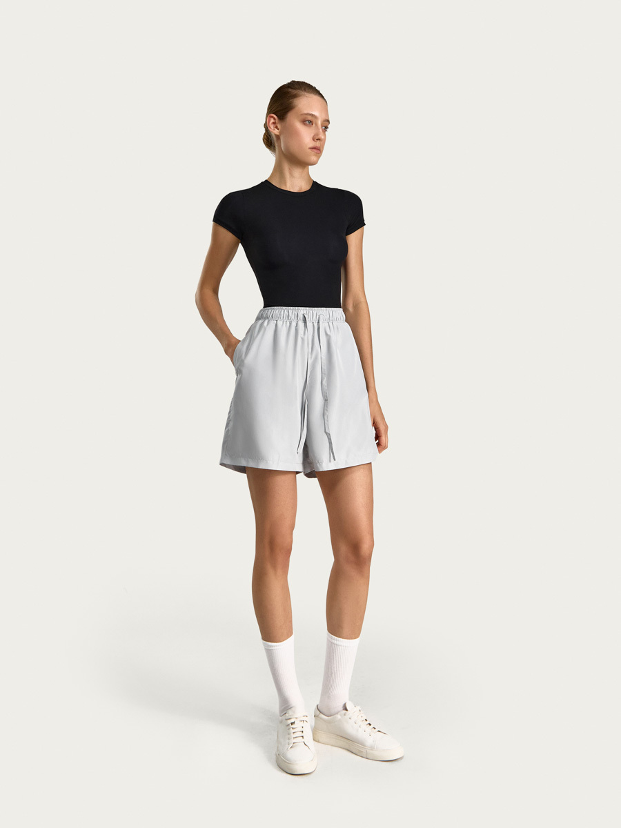 Шорты Соня выполнены из тонкой и легкой плащевой ткани. Шорты имеют притачной пояс с эластичной резинкой, кулисой и шнуром внутри, а также карманы в боковых швах и подкладку из спортивной сетки.