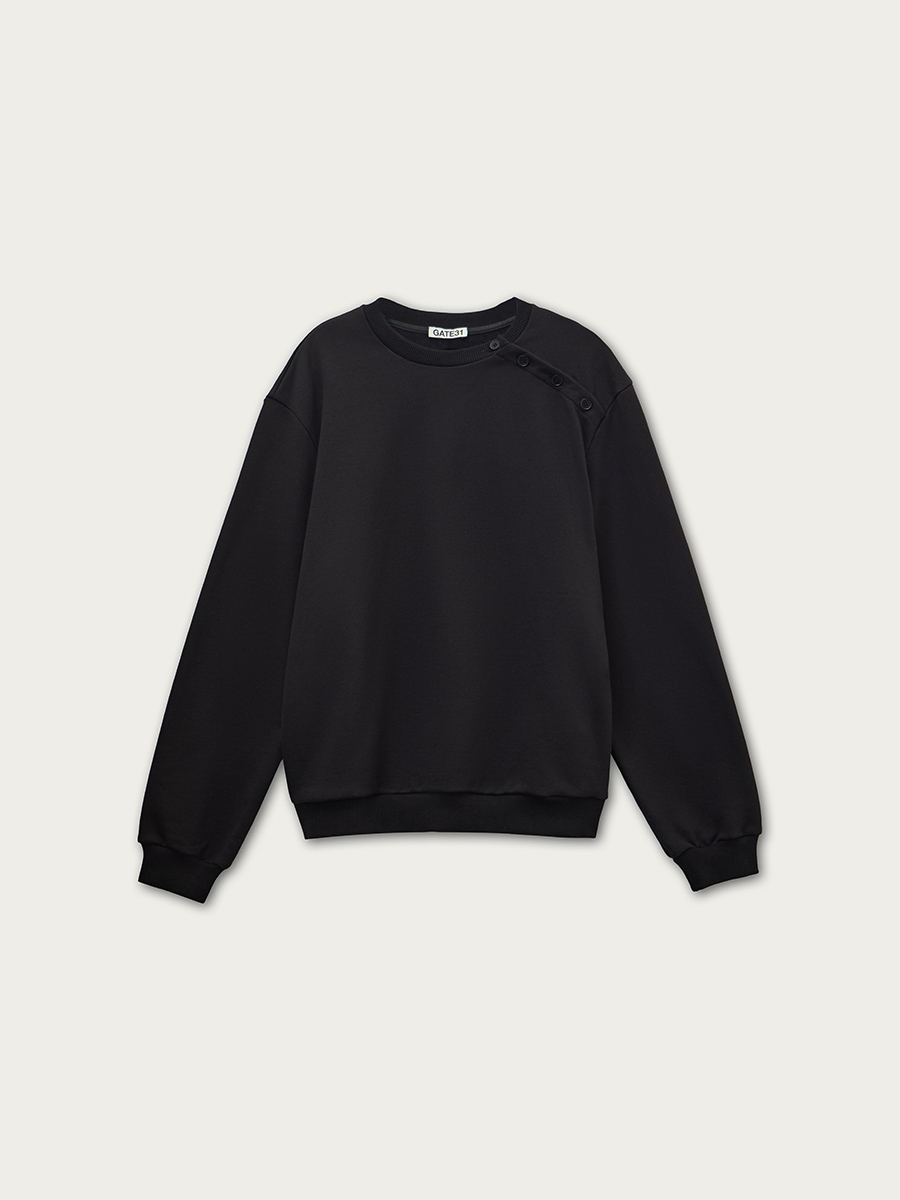 Свитшот прямого силуэта с круглой горловиной и асимметричной застежкой на пуговицы. Горловина, манжеты рукавов и низа изделия оформлены эластичным трикотажем в рубчик.Стильный свитшот Уолтер с асимметричной застежкой дополнит Ваш гардероб.
