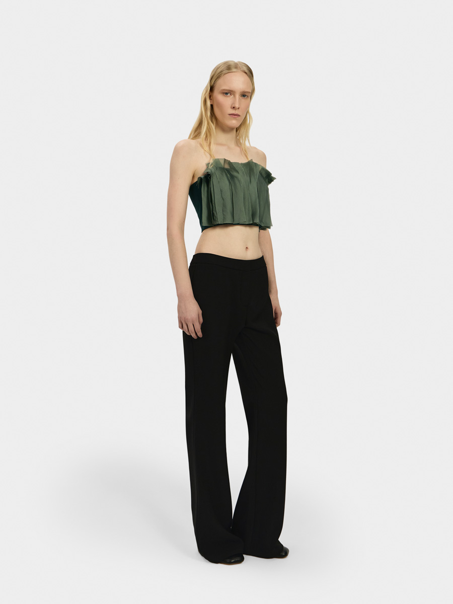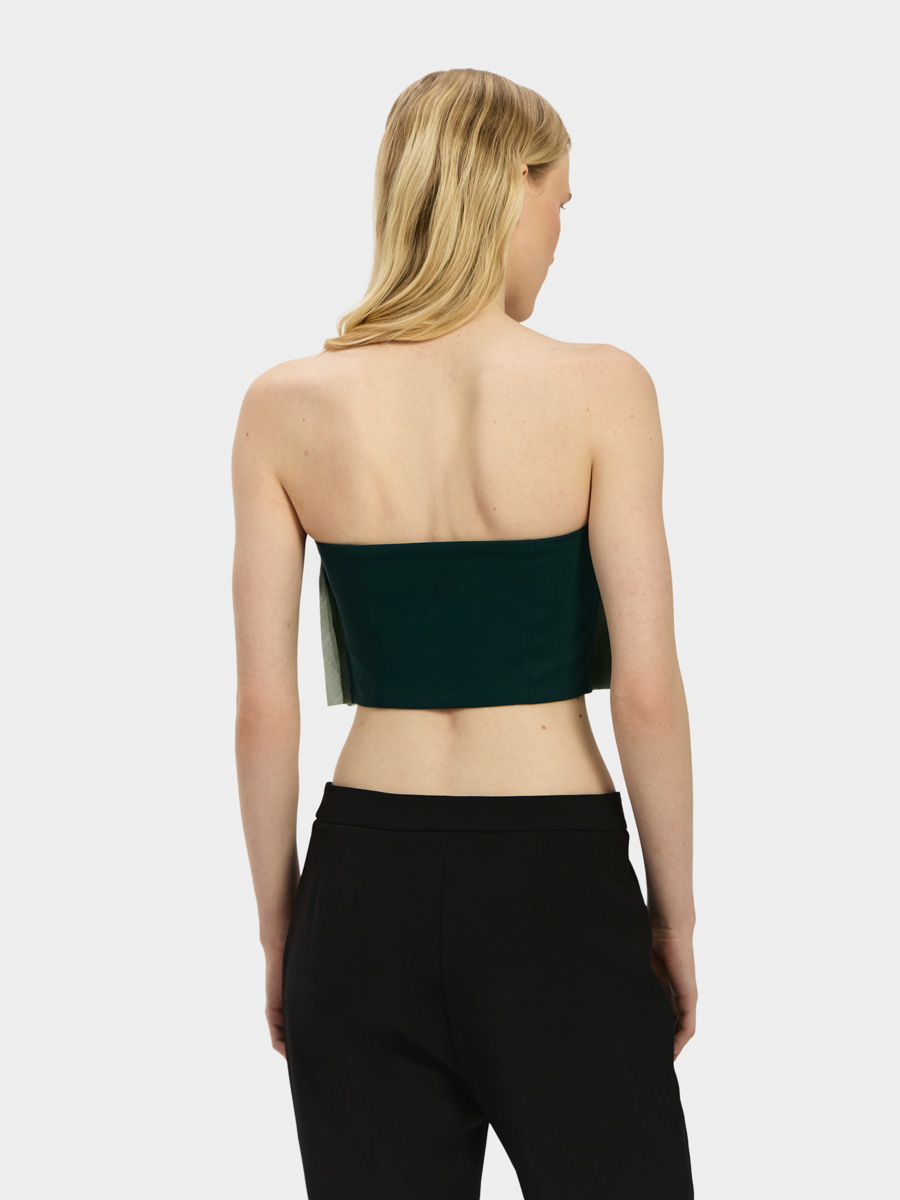 Топ-бандо Элайя выполнен из мягкой костюмной ткани и имеет застежку на молнию в боковом шве. Перед и спинка с рельефами.
