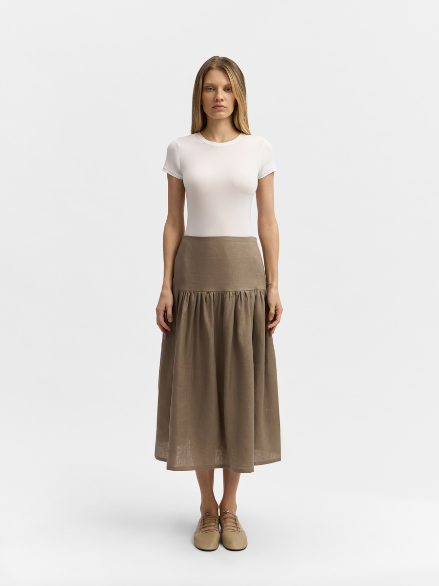 Топ-халтер Бриттани может быть дополнен юбкой Бриттани с кокеткой.