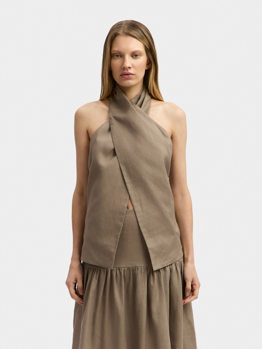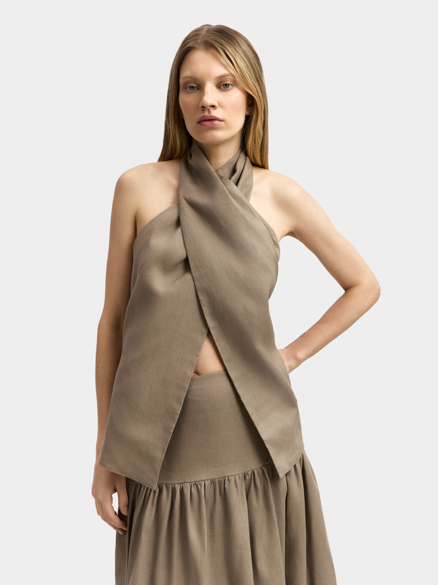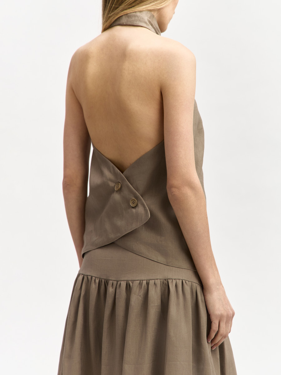 Топ-халтер Бриттани выполнен из льняной ткани.