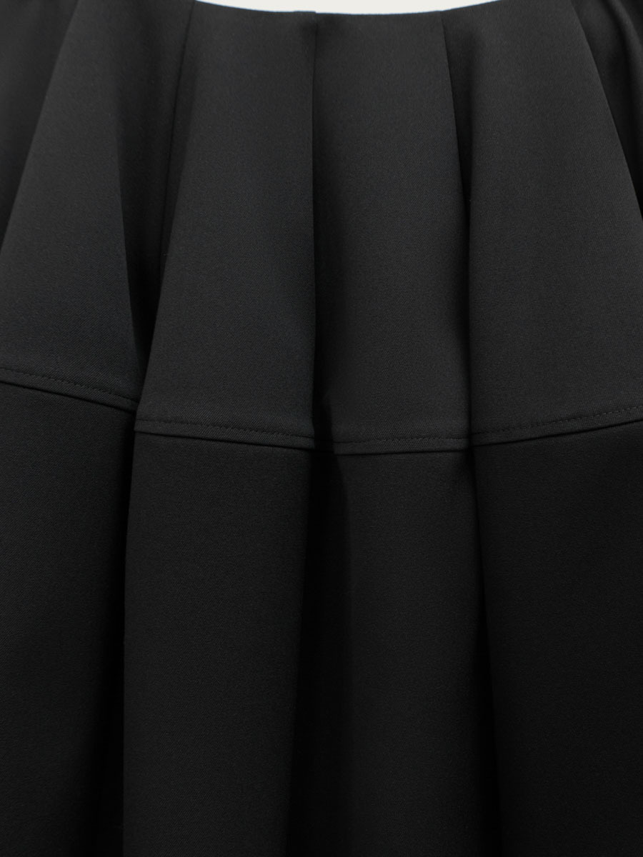 Асимметричная юбка с мягкими складками от талии и застежкой на потайную молнию в боковом шве. Благодаря своей форме, складки на переднем и заднем полотнище юбки красиво раскрываются в движении.
